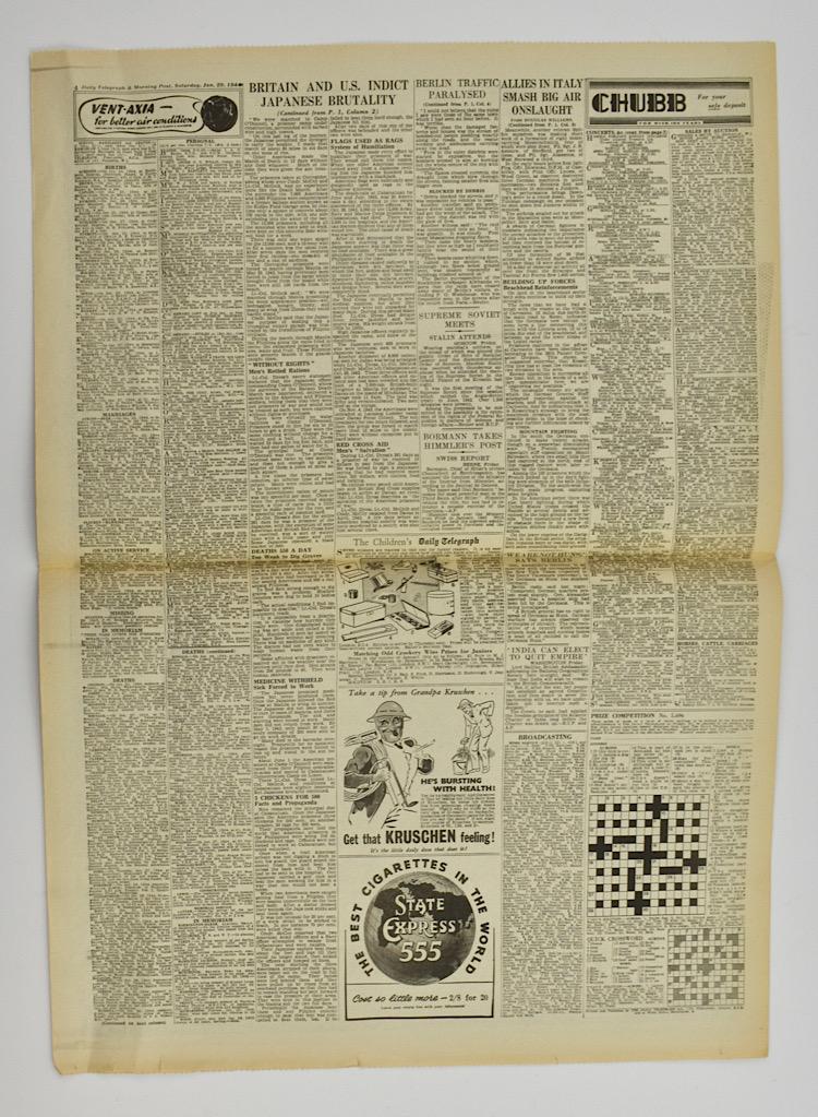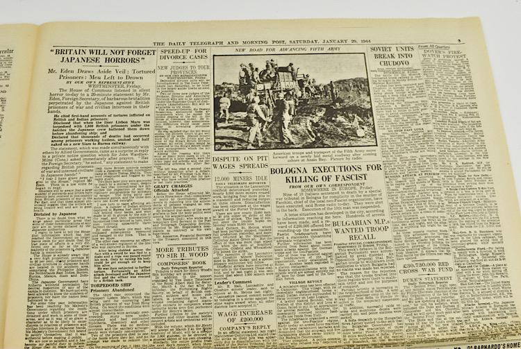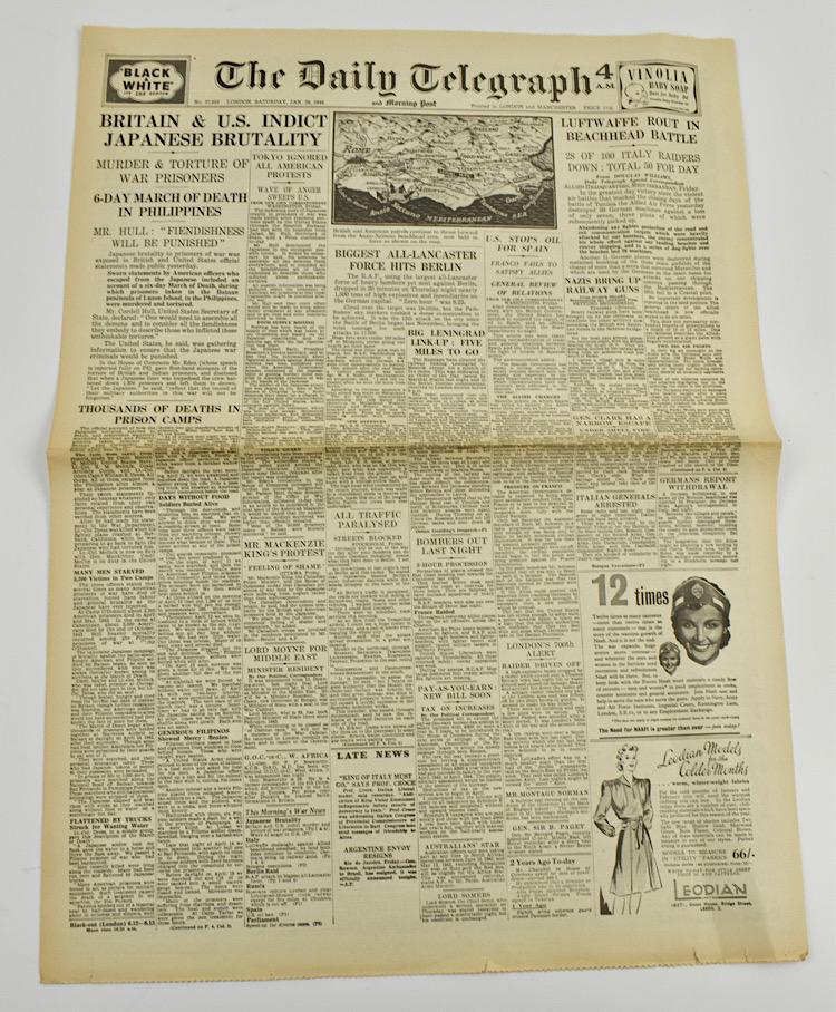 Dated “January 29, 1944” nice decorative British WW2 newspaper. Headline news!
