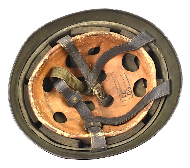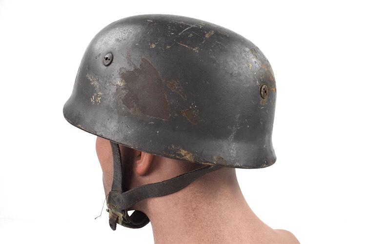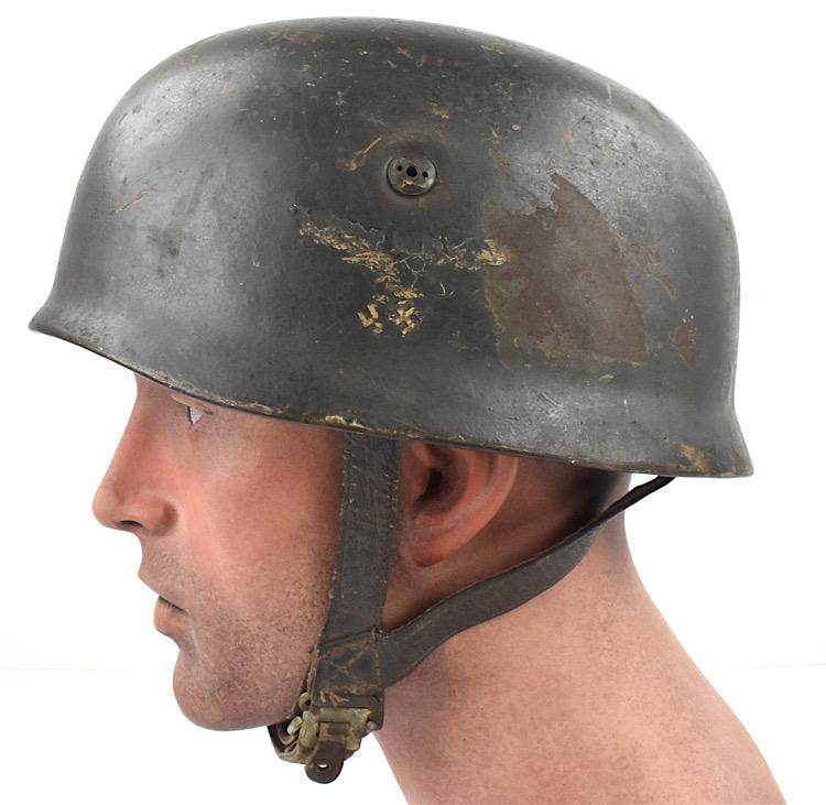 The Fallschirmjäger helmet is complete with its original nise used smooth leather combat helmet straps. Overal a nice used untouched original Fallschirmjäger combat helmet in very good condition.