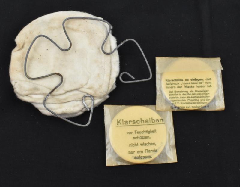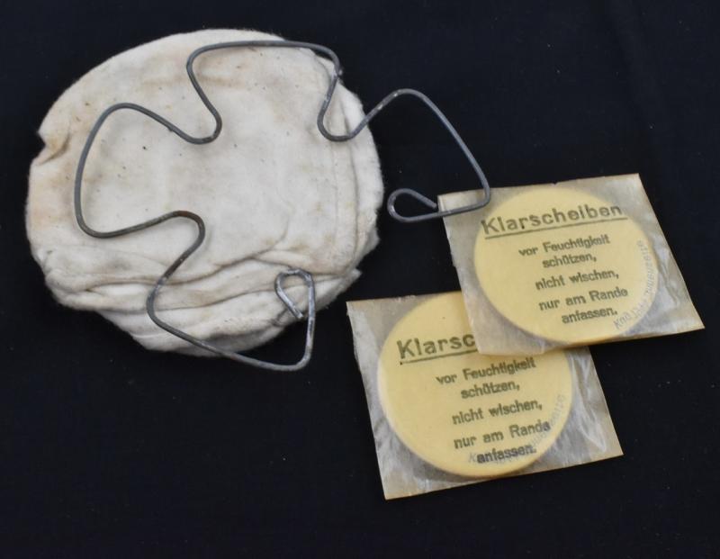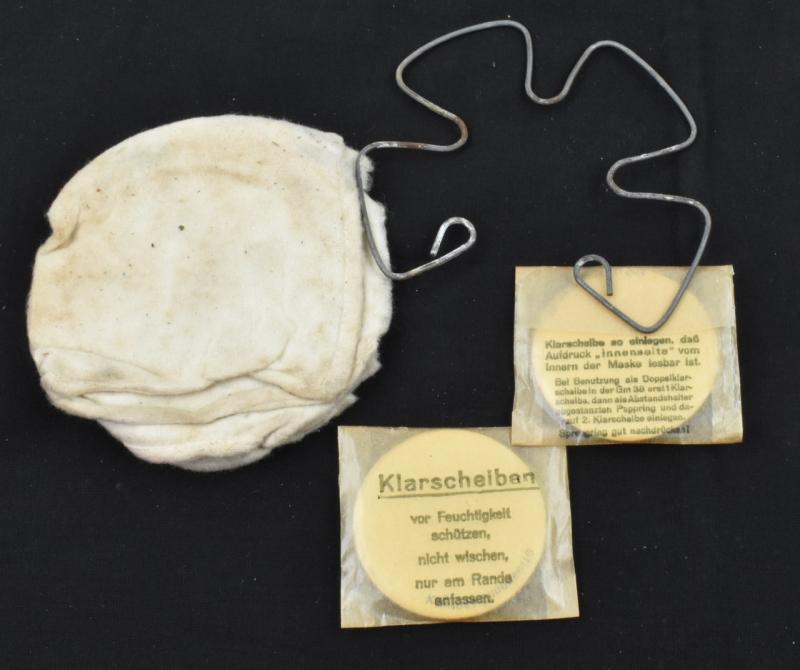 Wehrmacht M31 Gasmask Cleaning Cloth and Spring Nice used cleaning cloth and spring for the M31 gasmask and “Klarscheiben” Nice set to complete your M31 gasmask In good condition.