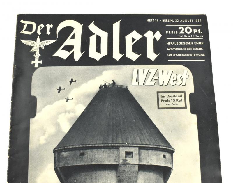 Der Adler Luftwaffe Magazine On the cover “Gross Bildbericht über die Luftverteidigungszone West” Dated “August 22, 1939” With lots a nice photographs inside. In very good condition.