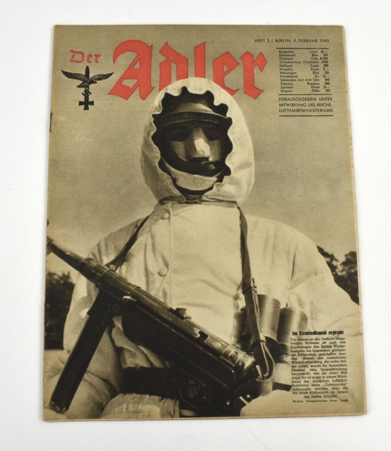 Der Adler Luftwaffe Magazine On the cover “Im Eiswindkanal erprobt” Dated “February 9, 1943” With lots a nice photographs inside. In very good condition.
