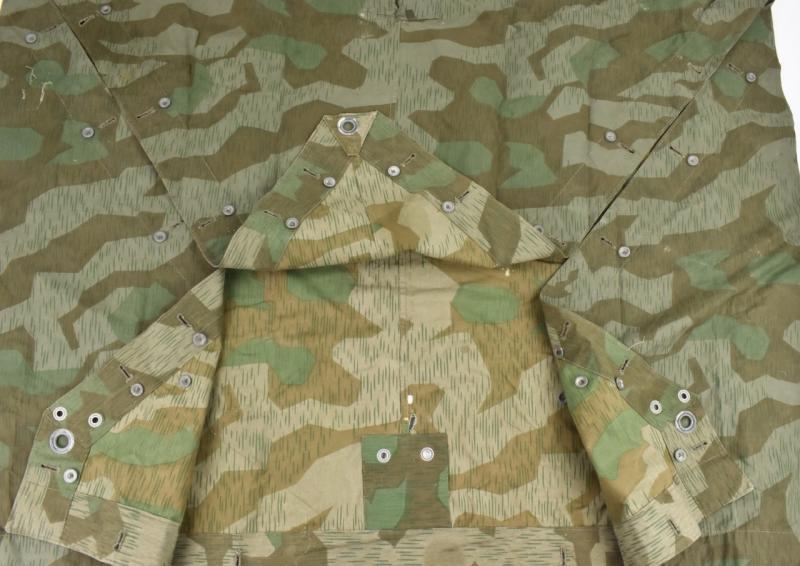 Nice used Wehrmacht so-called “Splitter” camo zeltbahn (shelter quarter) nice piece of standard Wehrmacht equipment. Used with four other shelter quarters as tent, but also used as rain poncho or used as a kind of camo smocks in combat.