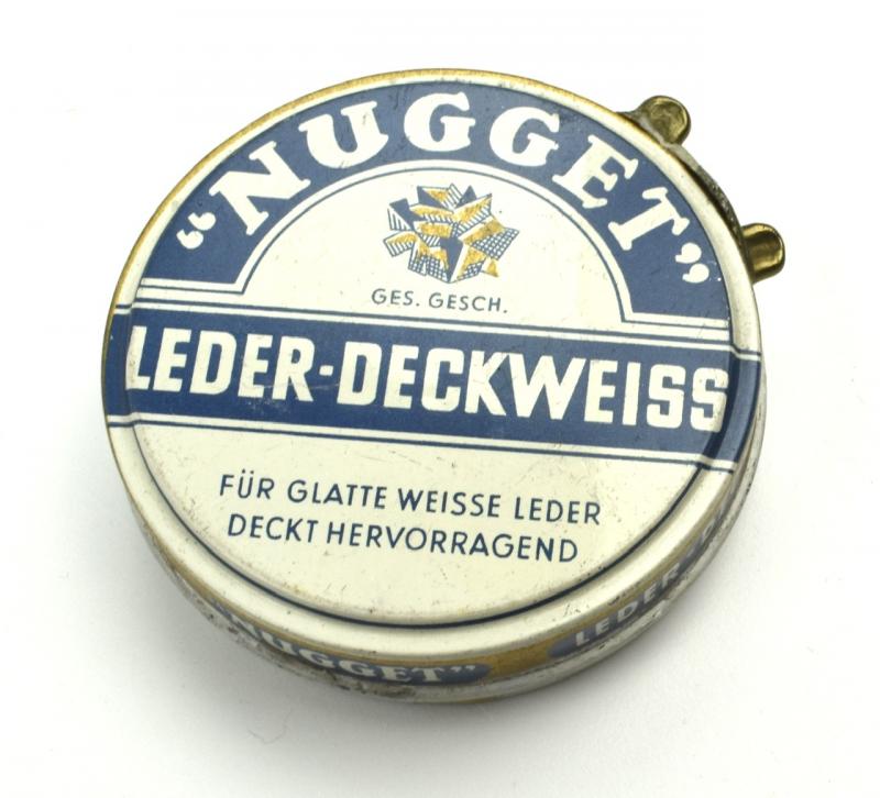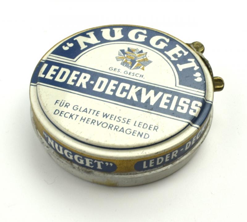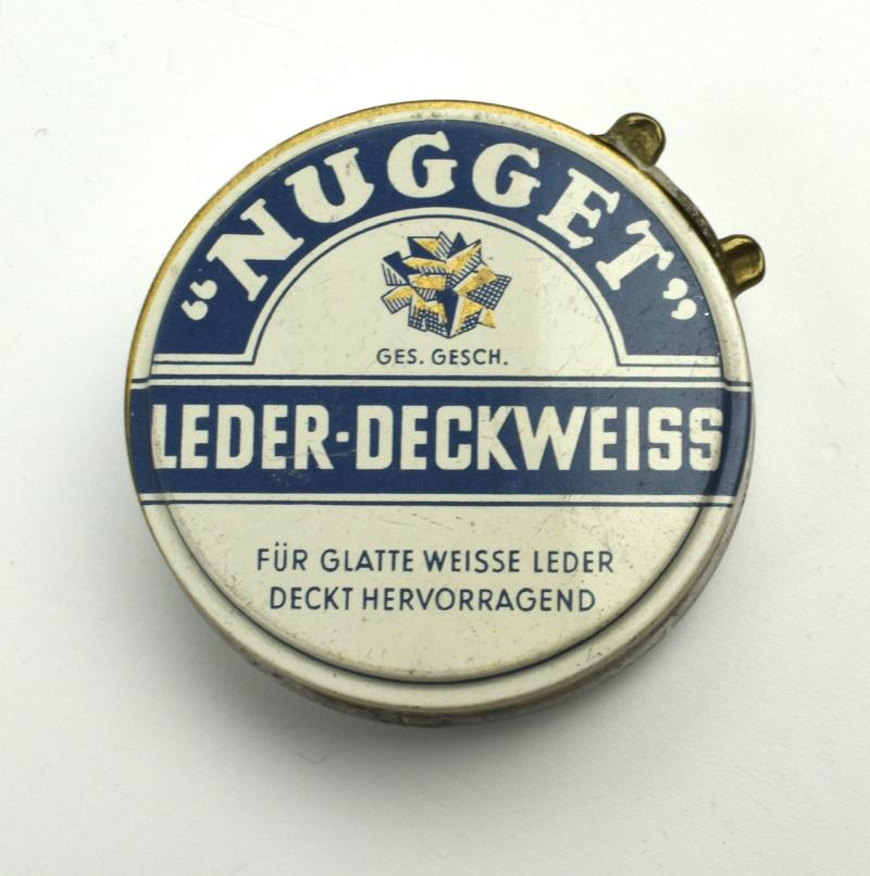 Wehrmacht era Shoe Polish Nugget Nice decorative metal can of Wehrmacht era “Shoe Polish Nugget” nice display item for a personal item collection. In very good condition.