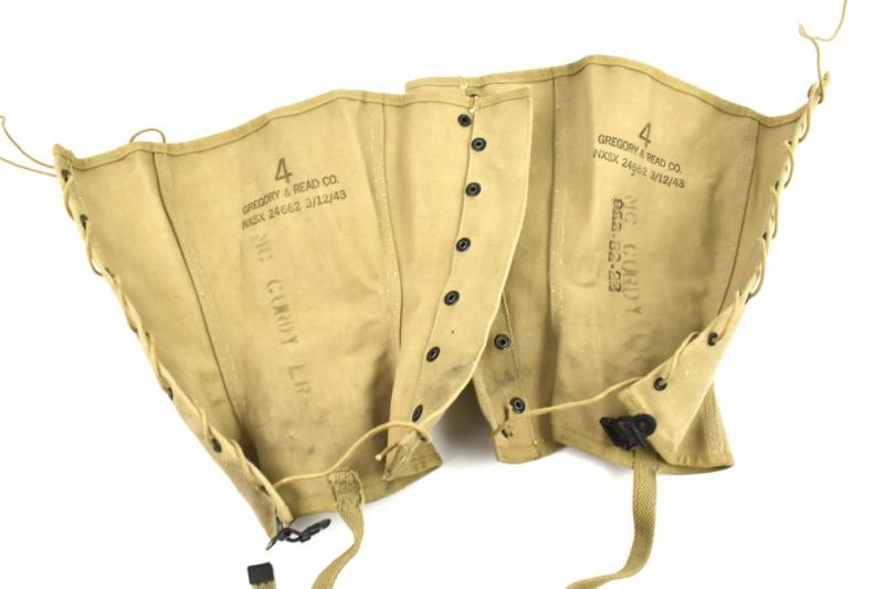 USMC WW2 Leggings Nice near mint USMS WW2 leggings With there original laces in good size “4” Made by “Gregory & Read Co.” Dated “1943” Named “M.C. Curdy LR” Fantastic to complete a WW2 USMC mannequin.