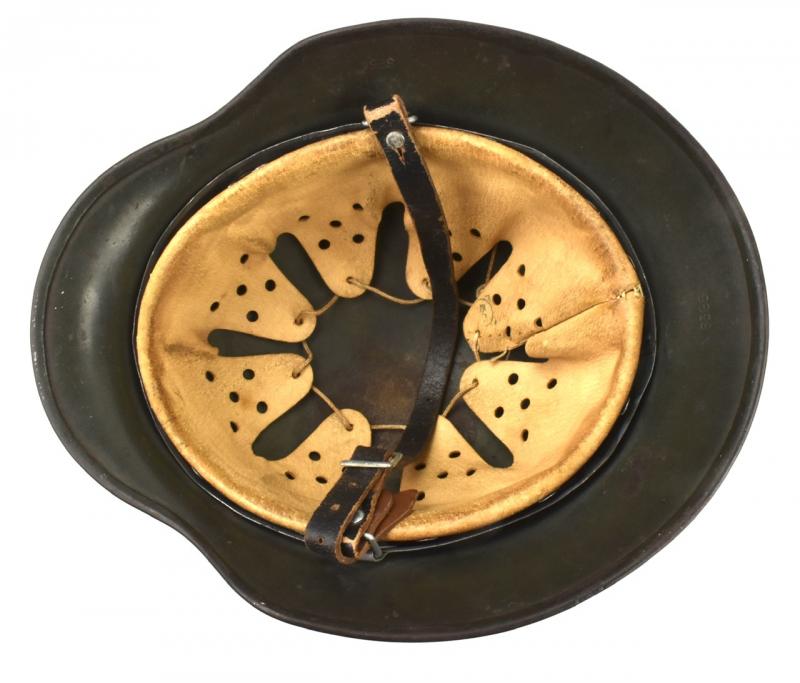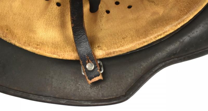 Maker code marked “SE” which is “Sachische Emaillerwerke, Lauter” in size “64” with its original liner in size “56” and complete with its original liner string. And original leather combat helmet strap.