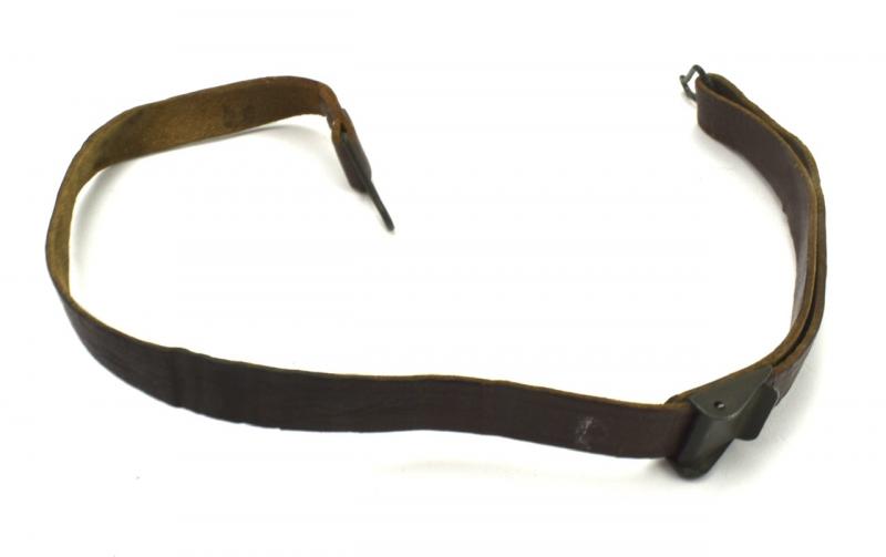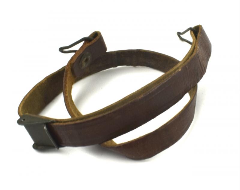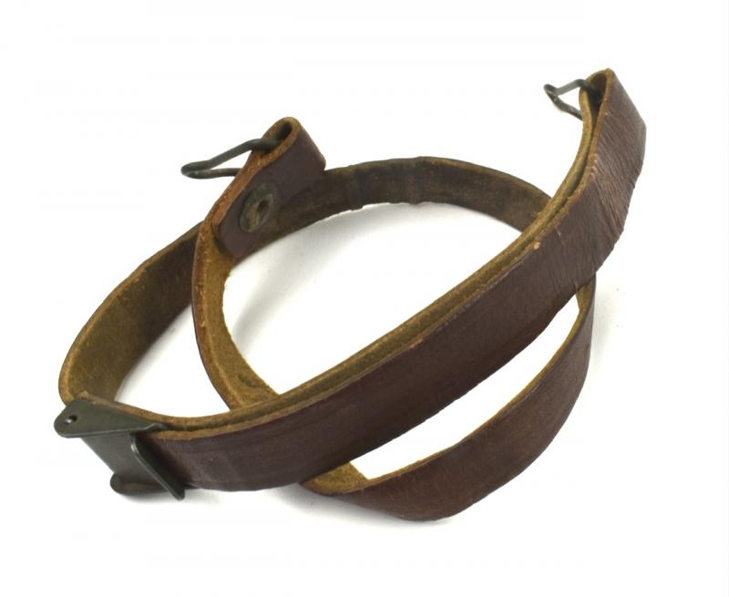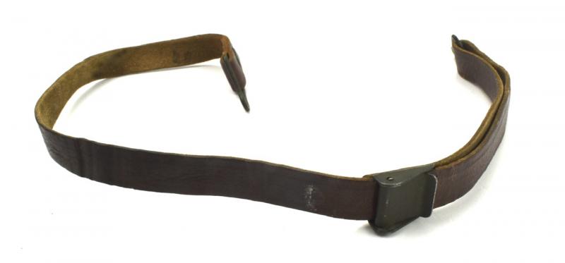 US WW2 Helmet Liner Strap Very nice used leather US WW2 helmet liner strap With green painted buckle. Great to complete a US WW2 helmet liner. In used but good condition. Hard to find these days!