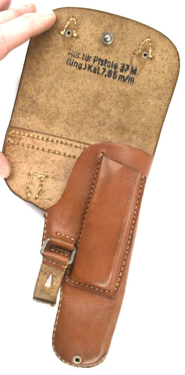 Inside nicely marked “Nur für Pistole 37 M (Ung.) Cal. 7.65 M/M” very nice pistol holster in very good condition.
