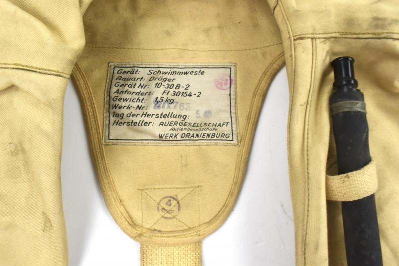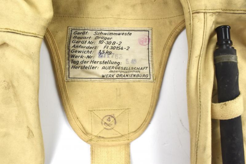 Very nice near mint condition Luftwaffe Pilot/Aircrew Life Vest (Schwimweste). Nicely marked inside with cloth label!