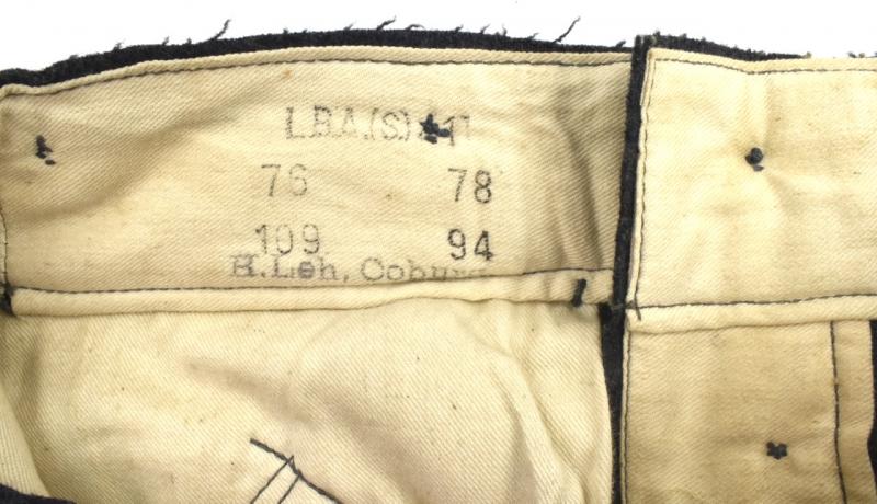 Luftwaffe M40 Trousers Very nice used Luftwaffe M40 trousers Size marked and maker marked Dated “1941” overal very nice Luftwaffe trousers in very good mannequin size and very good condition.