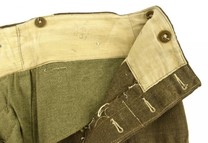 Nice used British WW2 40 patern Battle Dress trousers, “War Department” stamped with year letter “Z” which means the trousers are “1945” dated.