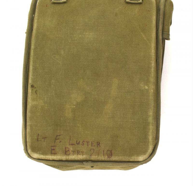 US WW2 Mapcase Nice used and named US WW2 mapecase with strap Named “Lt. F. Luster” (Lieutenant) “E. Btry. 2 Bn” Nice used mapcase in used but good condition. Nice on a mannequin!