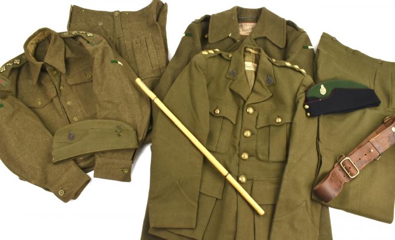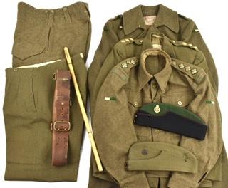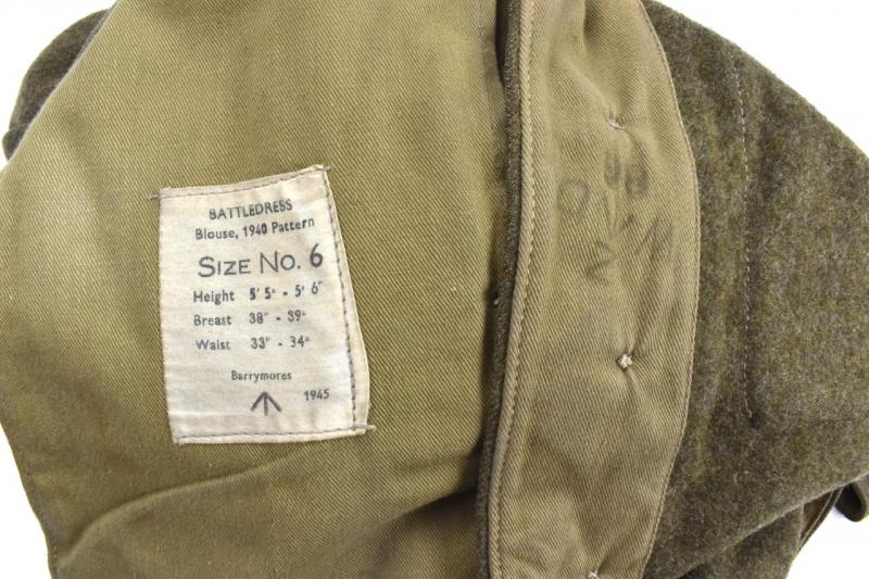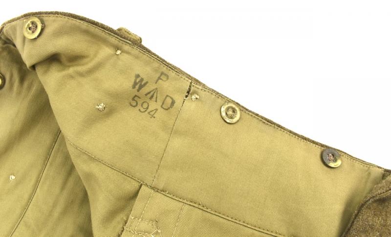 With cloth label and dated “1945” Very nice 39 patern Battle Dress trousers with “War Department” stamp with year letter “P” which means “1941” dated, wool side cap with metal badge, Officers service dress and trousers with all insignia, wool greatcoat with insignia, dress side cap with insignia, sam brown belt and his personal so-called “Swagger” stick named “D.G. Samson”. Overal a fantastic complete uniform grouping of the British WW2 “Army Dental Corps” alk from one man, which cam straight from his family in the UK. Al, in used but very good condition! Fantastic for display or the use on a mannequin!