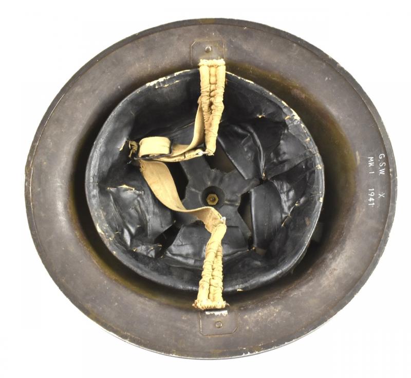 Nice used Canadian WW2 so-called “Brodie” type helmet. Nicely maker marked “G.S.W.” which is “Genral Steel Wares of Toronto” and dated “1941”