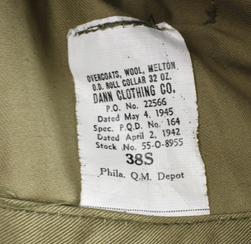 US WW2 wool Greatcoat Very nice used US WW2 wool greatcoat In size “38S” great for an American winter mannequin “Ardennes December 1944” with cloth label, dated “May 4, 1945” in used but very good condition.