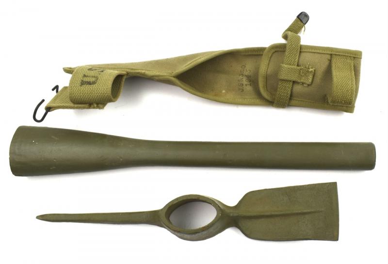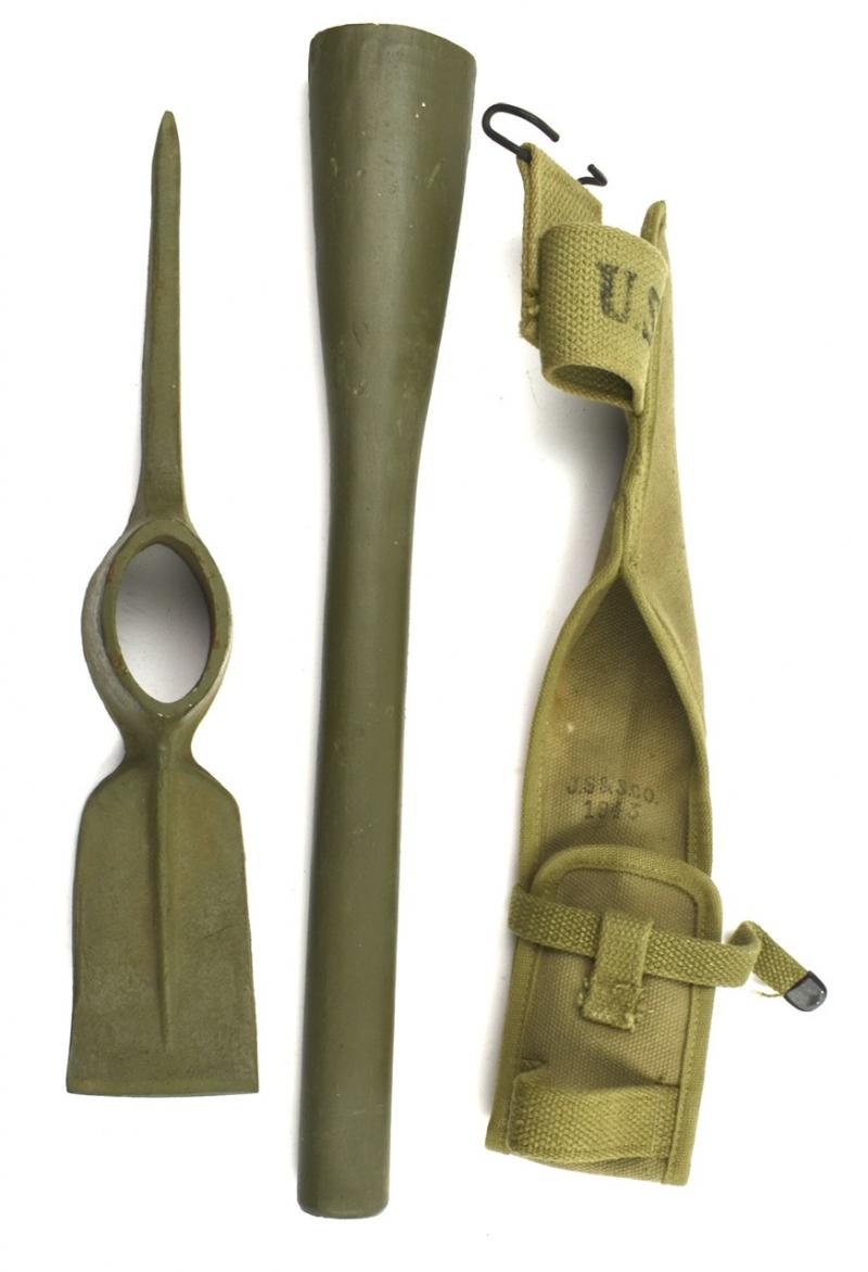 Nice near mint US WW2 pick axe/trench tool in its original cover. Cover marked “J.S. & S. Co.” and dated “1943” overal in very good near mint condition.