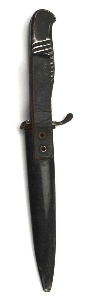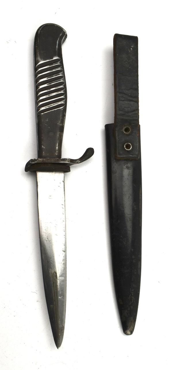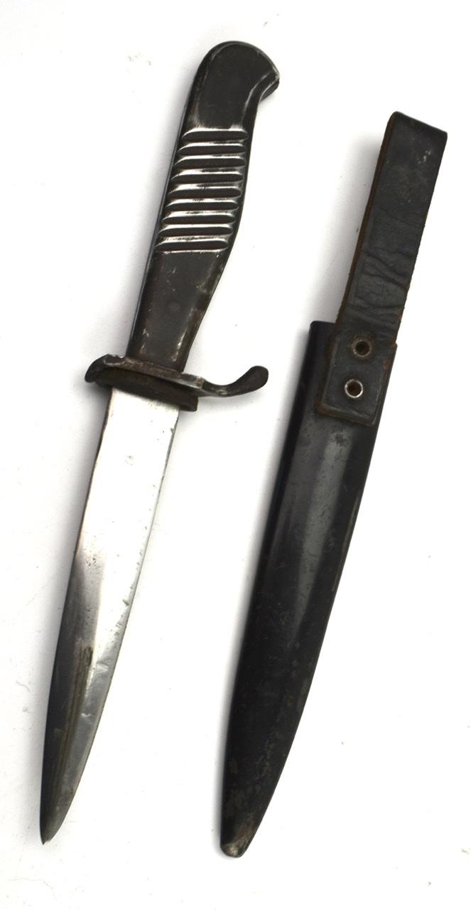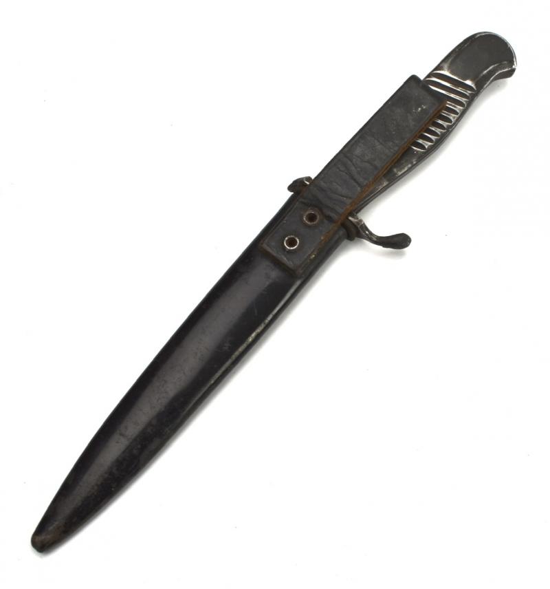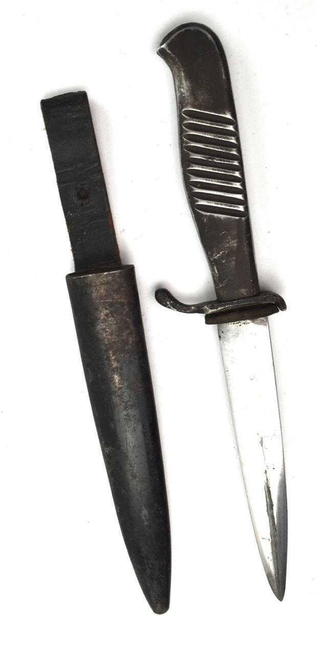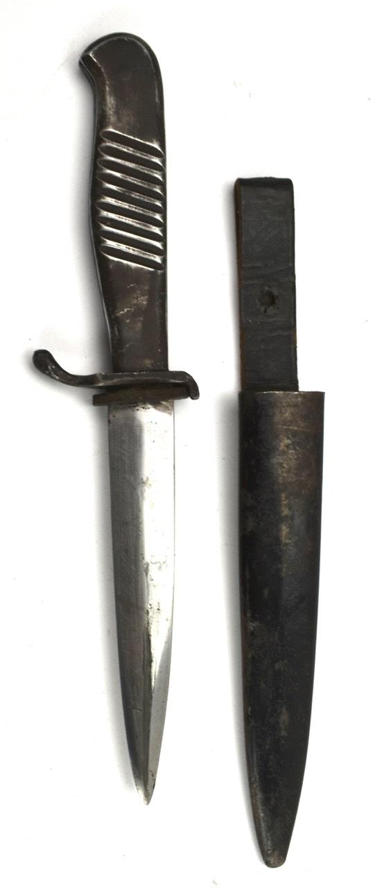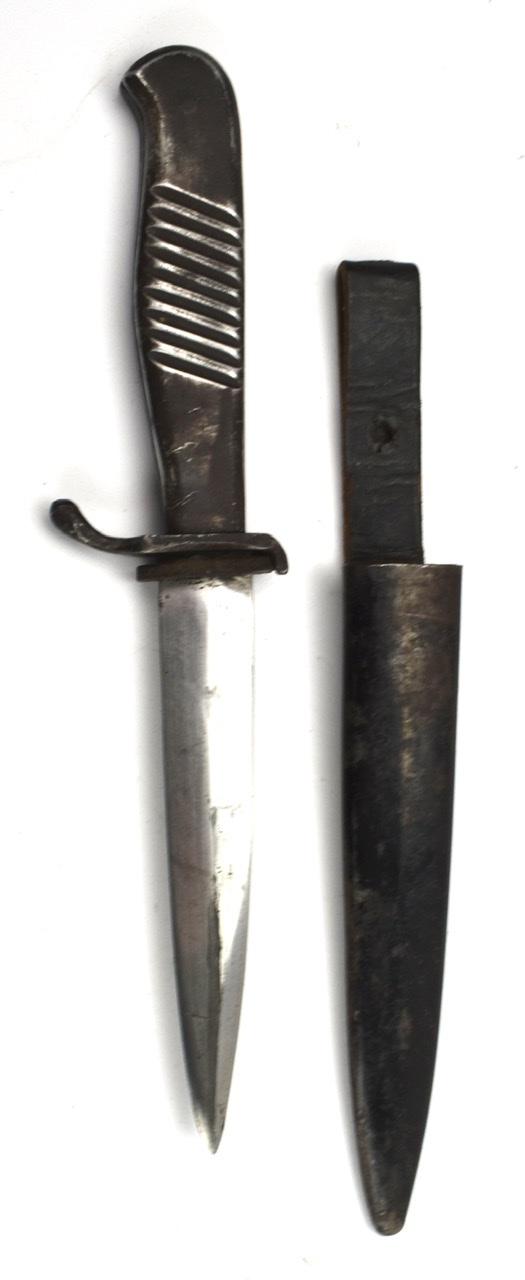 German WW1 Close Combat Knife Used but nice German WW1 close combat knife with rare metal grips (which you do not find often! In its original scabbard. In used but good condition.