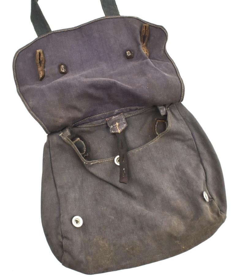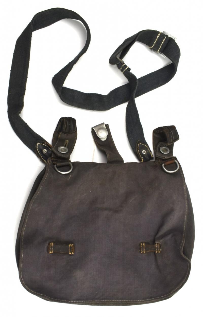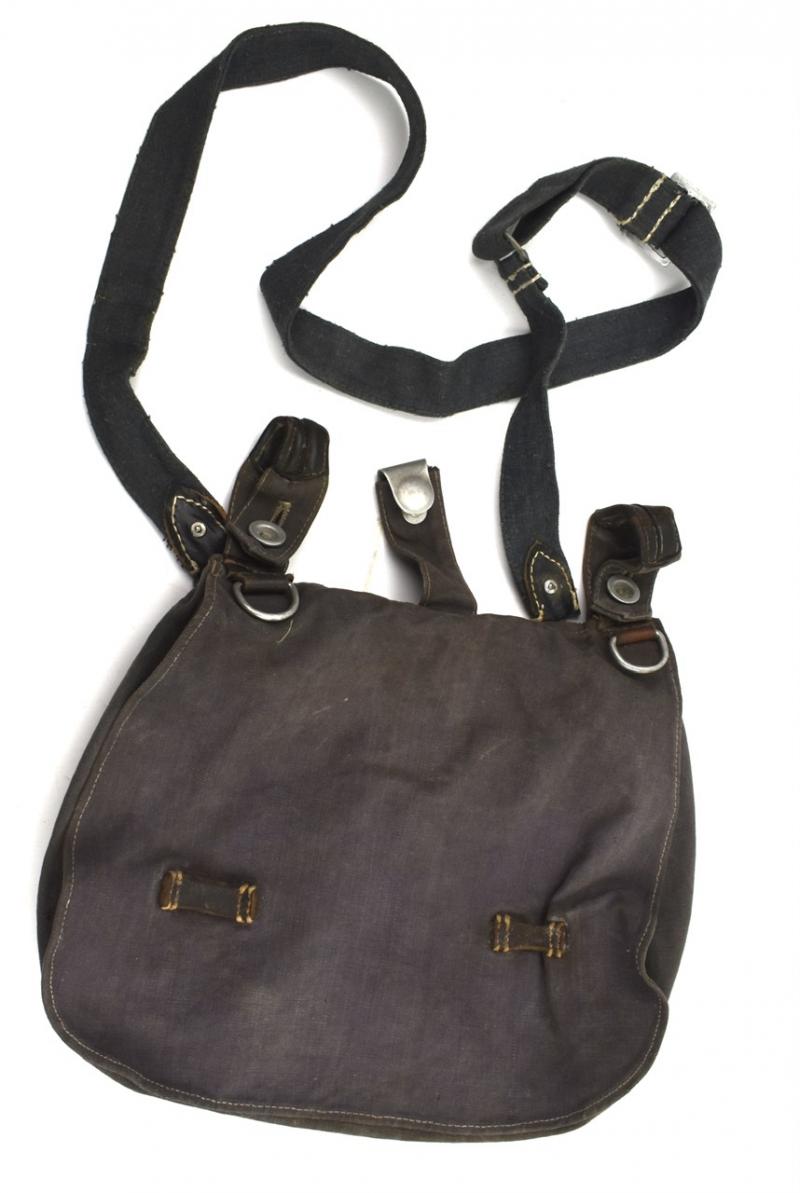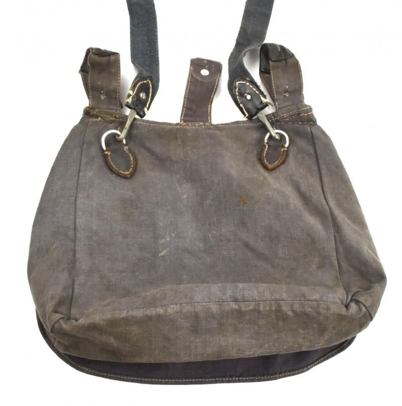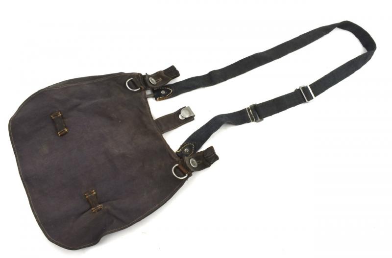 Nice used early Luftwaffe breadbag with leather re-enforcement on the belt loops and aluminum D-rings The breadbag is complete with carrying strap.