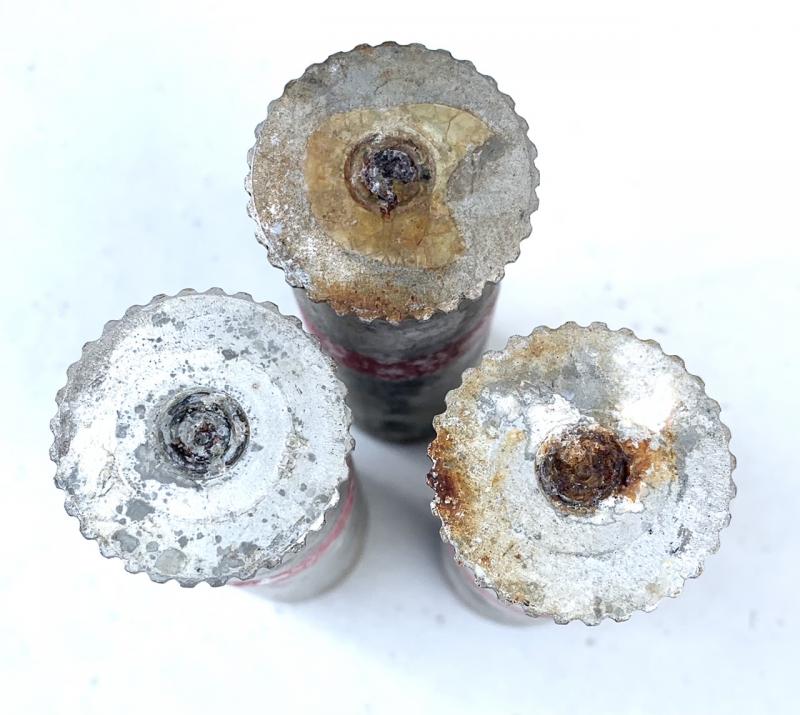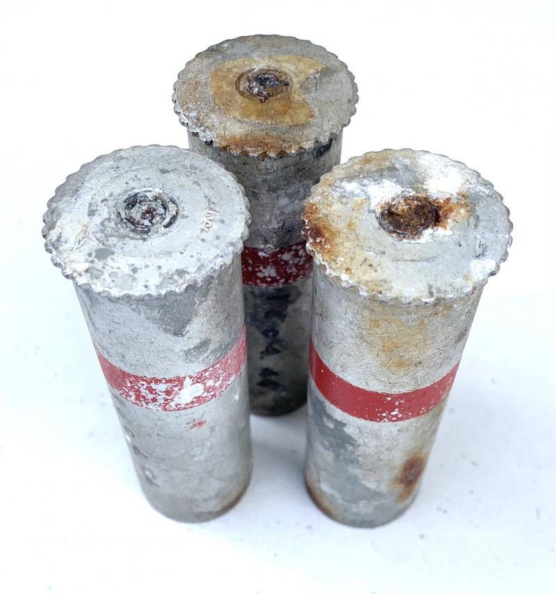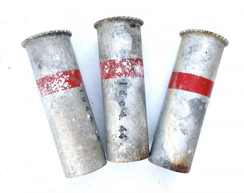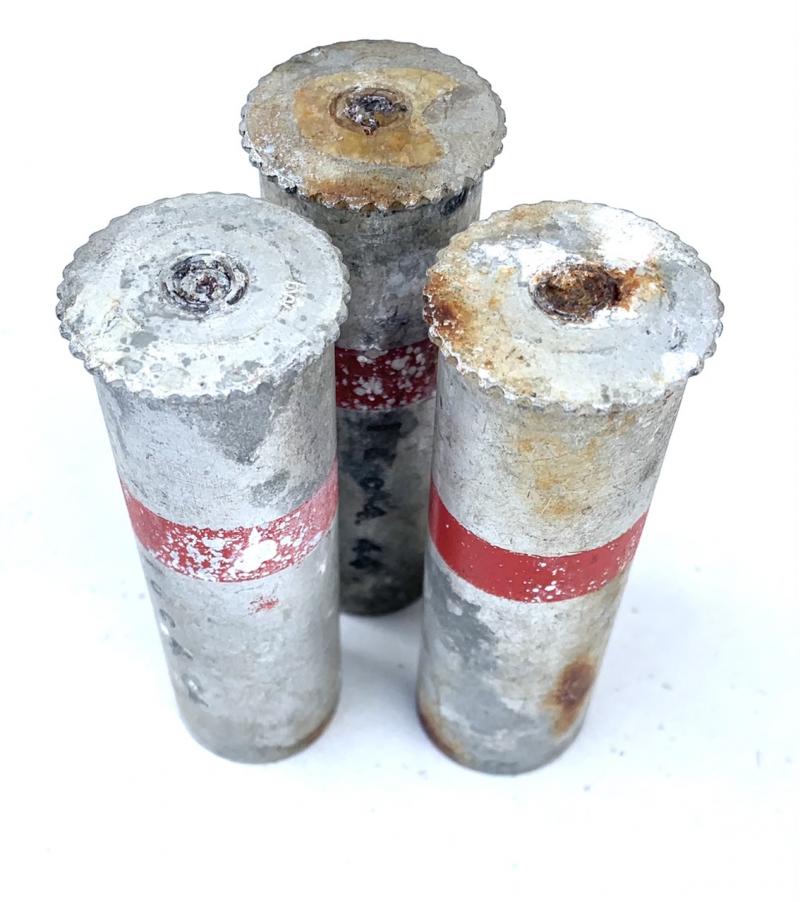 3 empty Wehrmacht Cal. 4 Flaregun Shells Great for display and decoration 3 empty Wehrmacht flaregun shells in Cal. 4. All shells are dated “1944” and are in empty used but good condition.