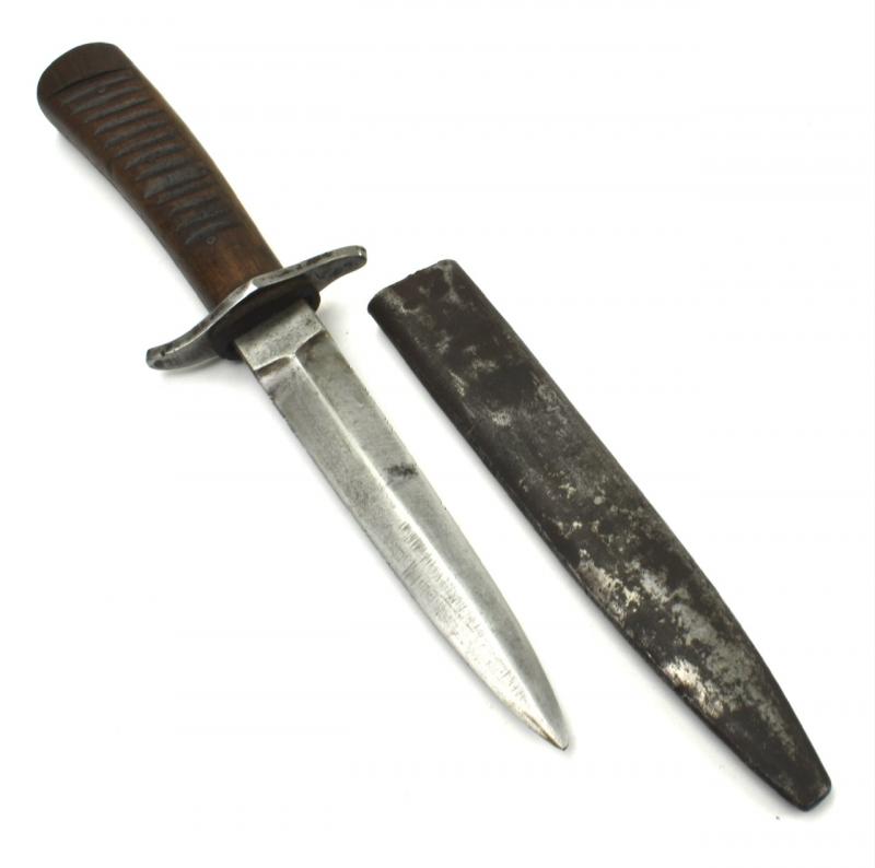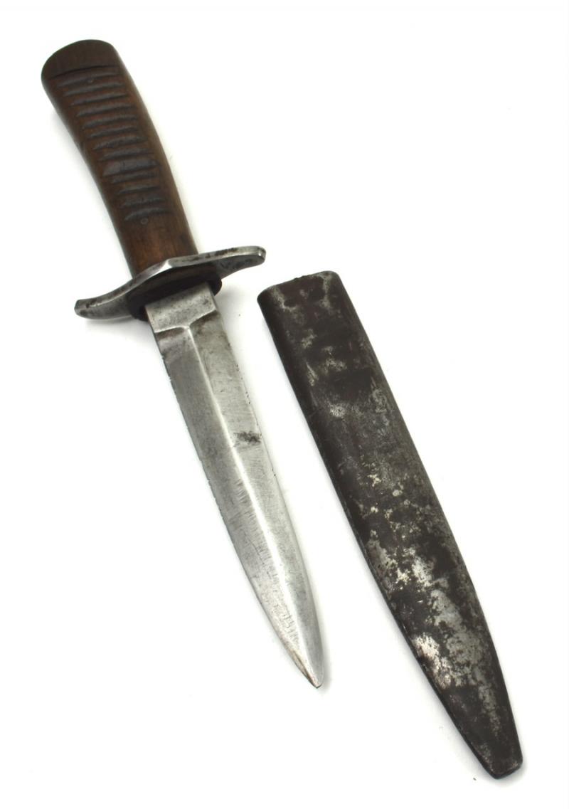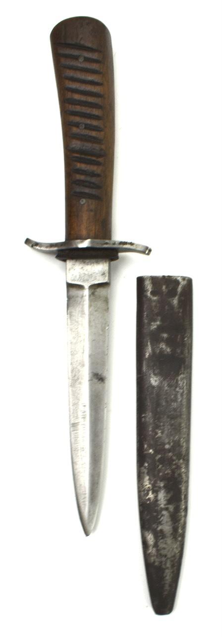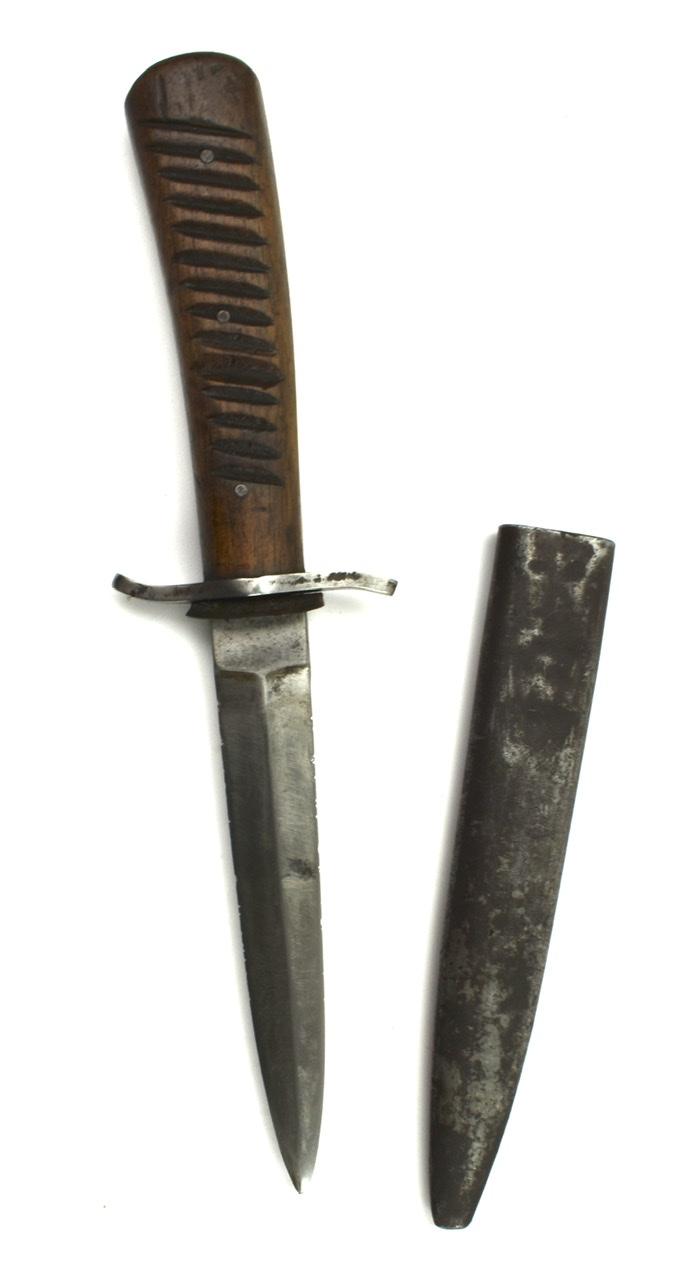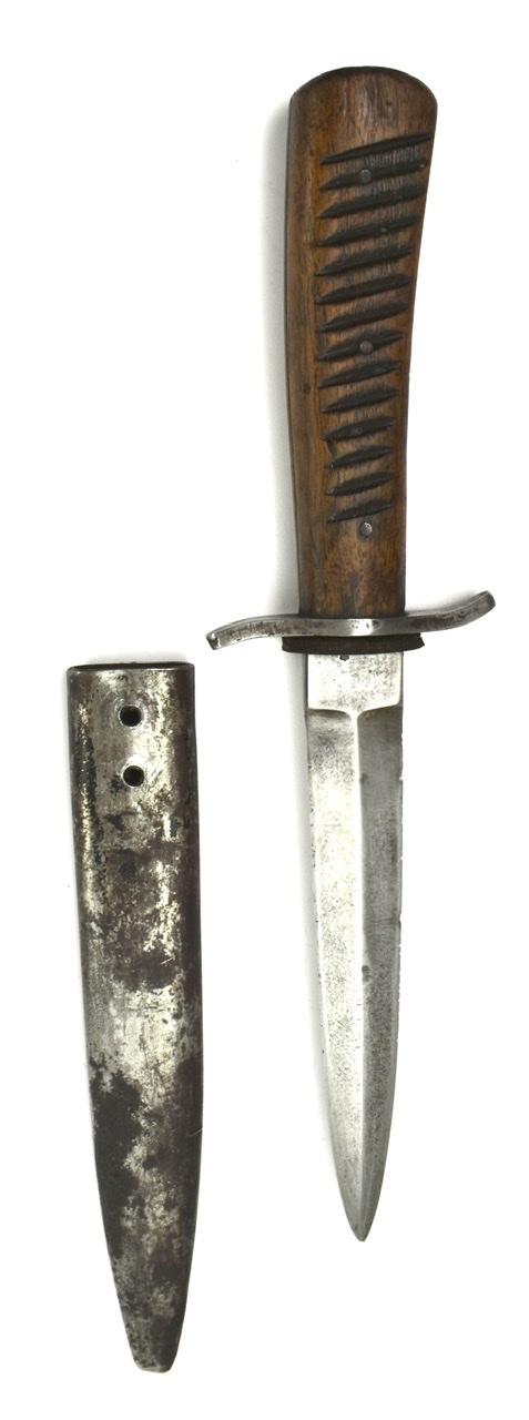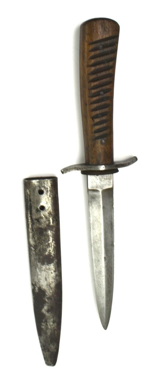 German WW1 Close Combat Knife Used but nice German WW1 close combat knife with nice thick wooden grips (which you do not find often! In its original scabbard. In used but good condition.
