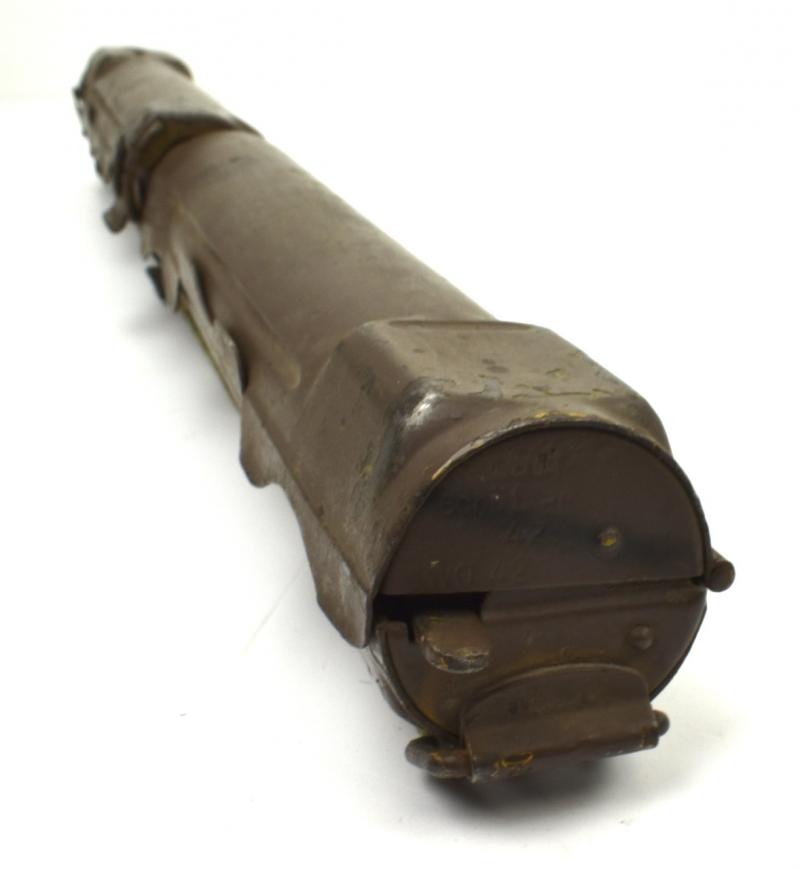 MG42 Spare Barrel Container Nice used MG34 spare barrel container “Behälter” Would hold and protect a MG42 spare barrel Strap replaced. Marked “Lauf Schützer” dated “1942” In used but good condition.