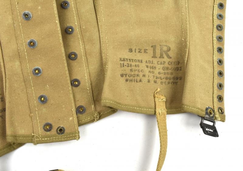 USMC WW2 Leggings Nice near mint USMS WW2 leggings With there original laces in good size “1” Regular Made by “Keystone ADJ Cap Co.” Fantastic to complete a WW2 USMC mannequin.