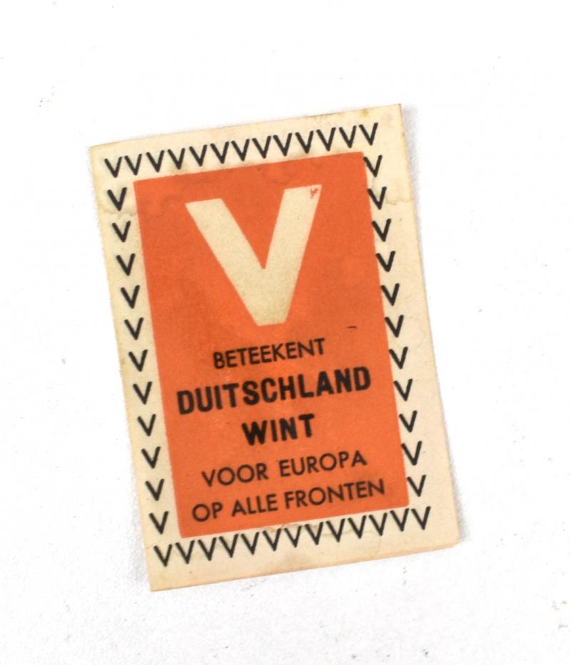 “V beteekent Duitschland wint voor Europa op alle Fronten” (V means Germany wins for Europe on all fronts) this propaganda seal would be used to close parcels and envelopes.