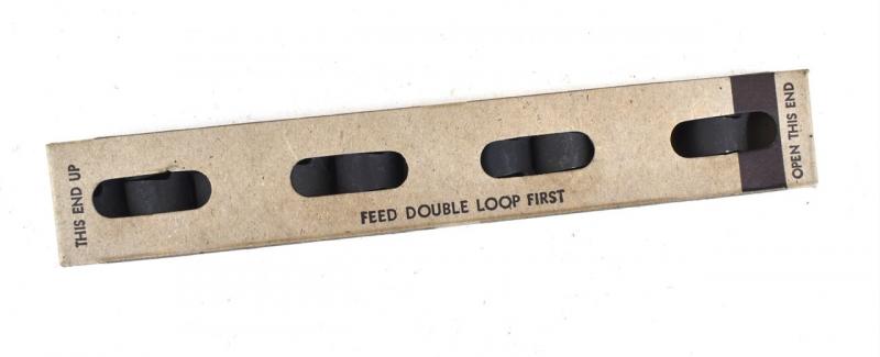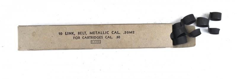 US WW2 .50 Cal. Belt links in package In a very good condition a package of US WW2 .50 Cal Belt Links. The packages contains 10 links. Great for Display!