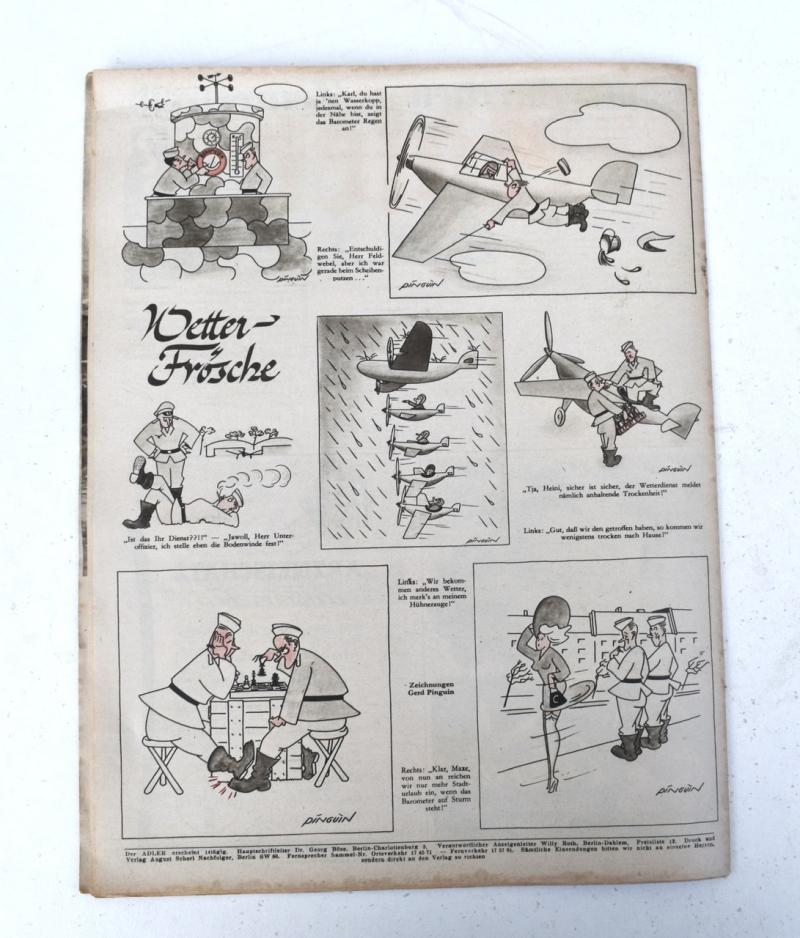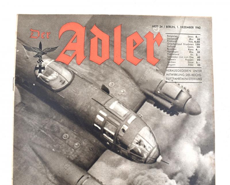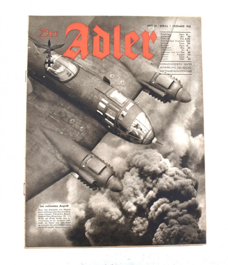 Der Adler Luftwaffe Magazine On the cover “Im Rollenden Angriff” “HE 111” heavy Bomber Dated “December 1, 1942” With lots a nice photographs inside. In very good condition.