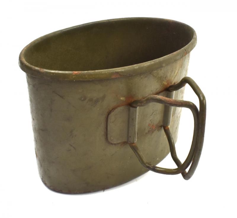 Wehrmacht metal M31 Canteen Cup Nicely maker code marked “ESB” and dated “1942” The nice used cup comes in 98% of its original field/grey Wehrmacht camo paint. Fantastic to complete a nice M31 canteen!