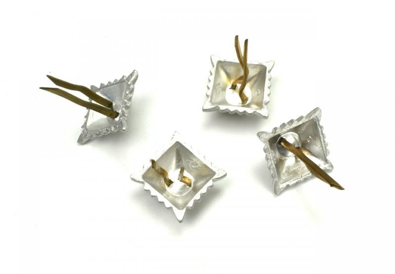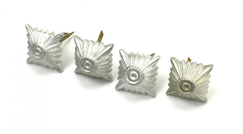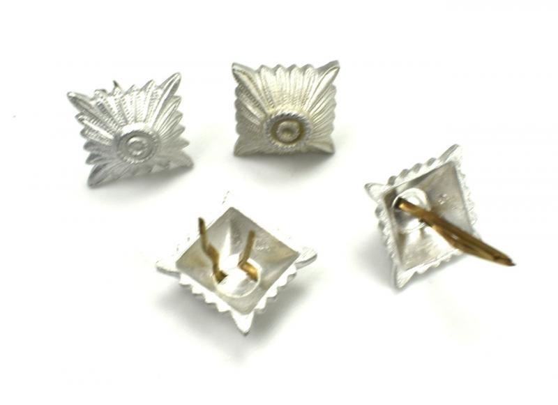 4 Wehrmacht/WaffenSS metal Rank Insignia Very nice metal Wehrmacht rank pips. Maker marked inside. In very good condition.