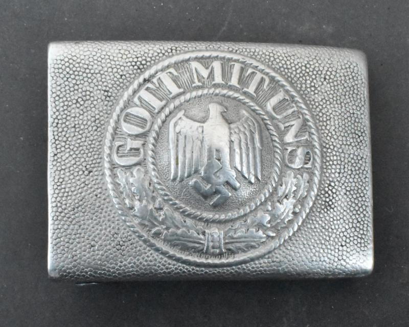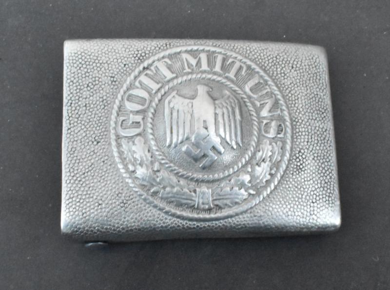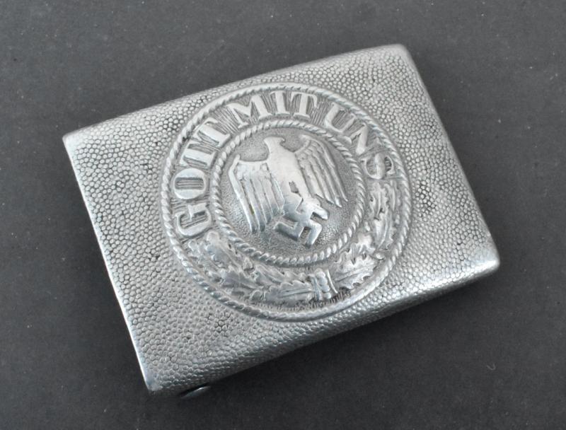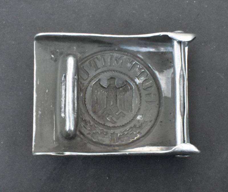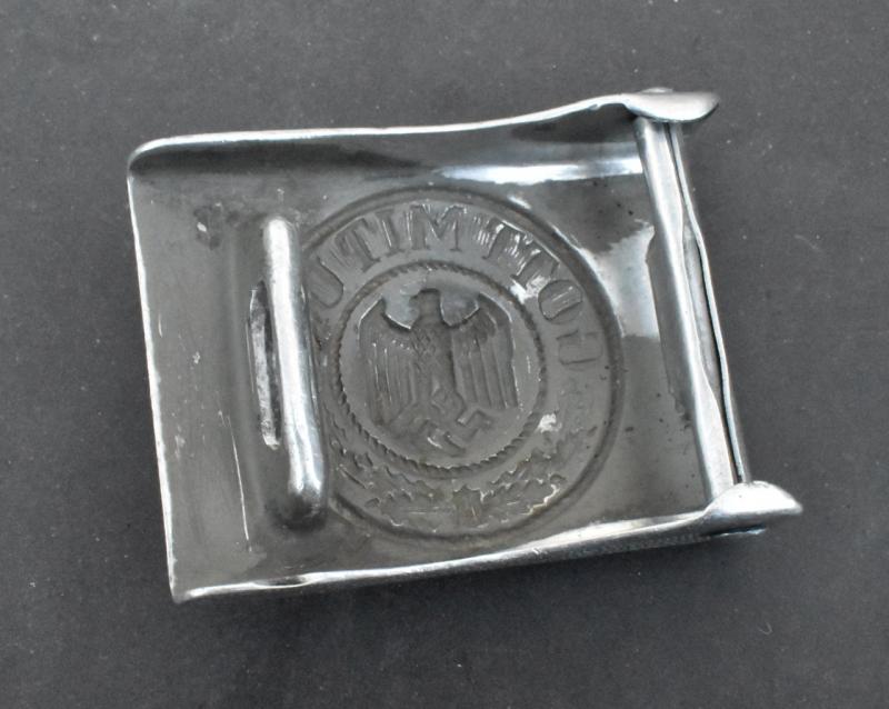 Wehrmacht Aluminum Belt Buckle Nice used Aluminium made Wehrmacht belt buckle Unfortunately the prongs are broken. But that can be fixt. Overal a nice used buckle in used but good condition.