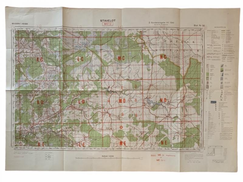 Wehrmacht Staff Road Map Stavelot Ardennes Very nice early dated “1941” Wehrmacht road map “Stavelot” Ardennes in used but very good condition Great for a Battle of Bulge display!