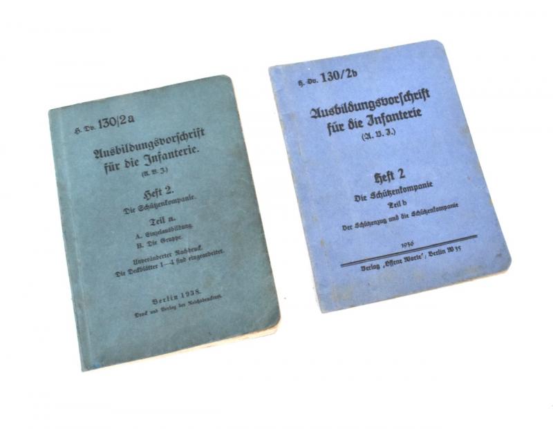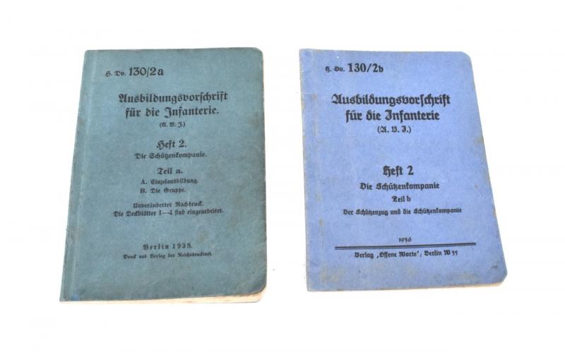 2 Wehrmacht Infantry Training Booklets “Ausbildungsvorschrift für die Infanterie” “Heft 2 teil A” and “Heft 2 teil B” Dated “1936” and “1938” Both in nice used, but good condition.