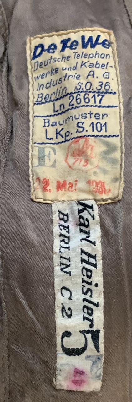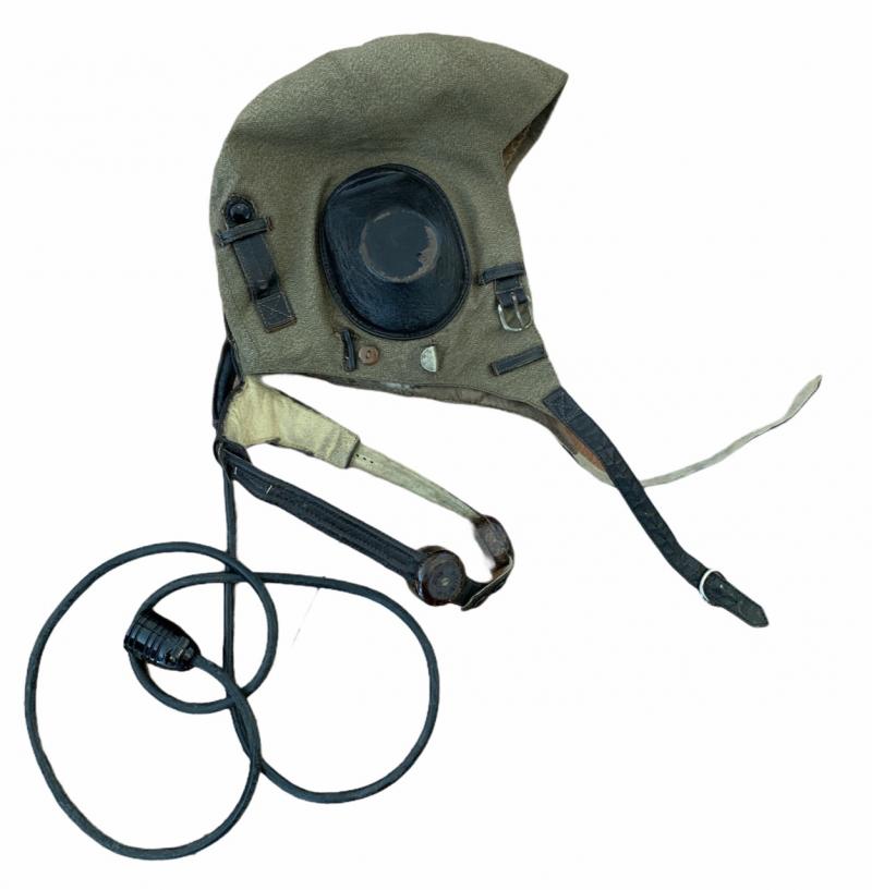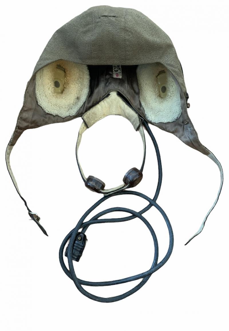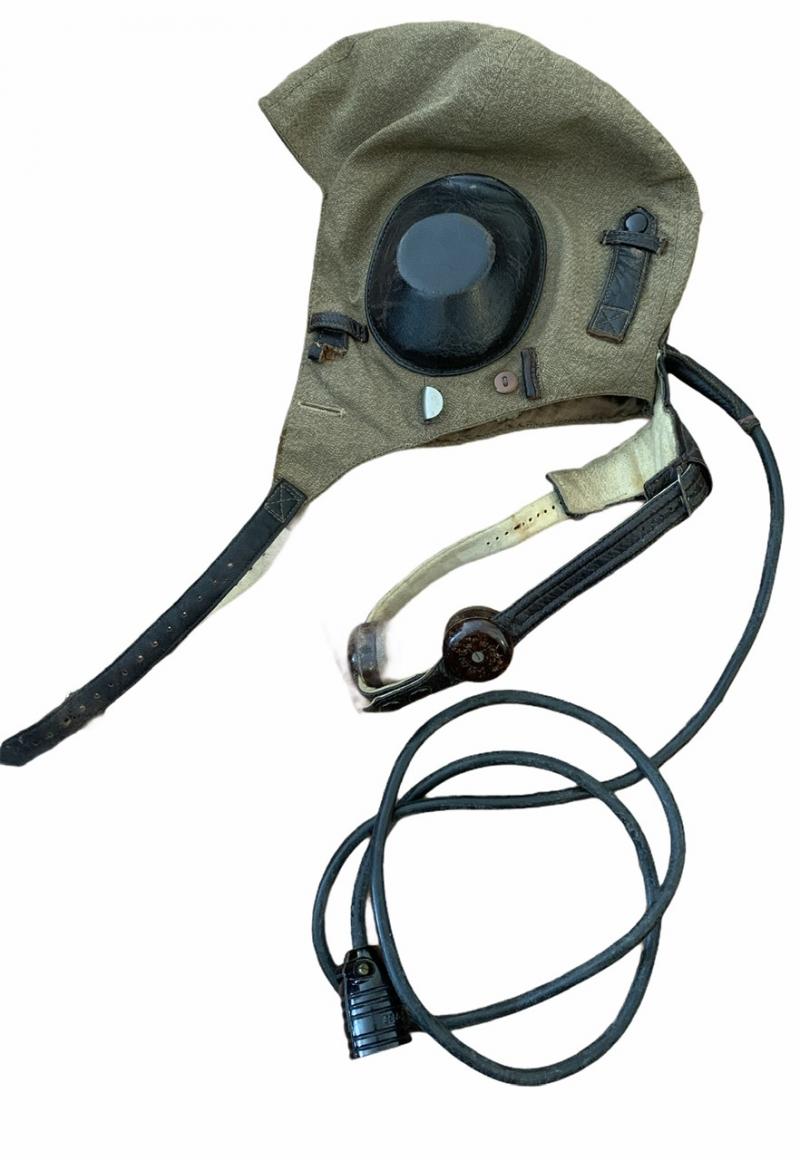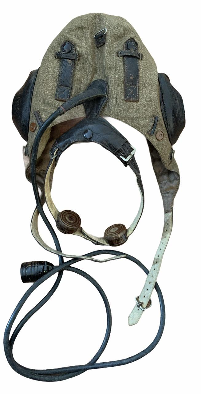 “Flieger Kopfhaube” nice used Luftwaffe Pilot/Aircrew summer flight cap, with its original cable, throat microphone and earphones inside.
