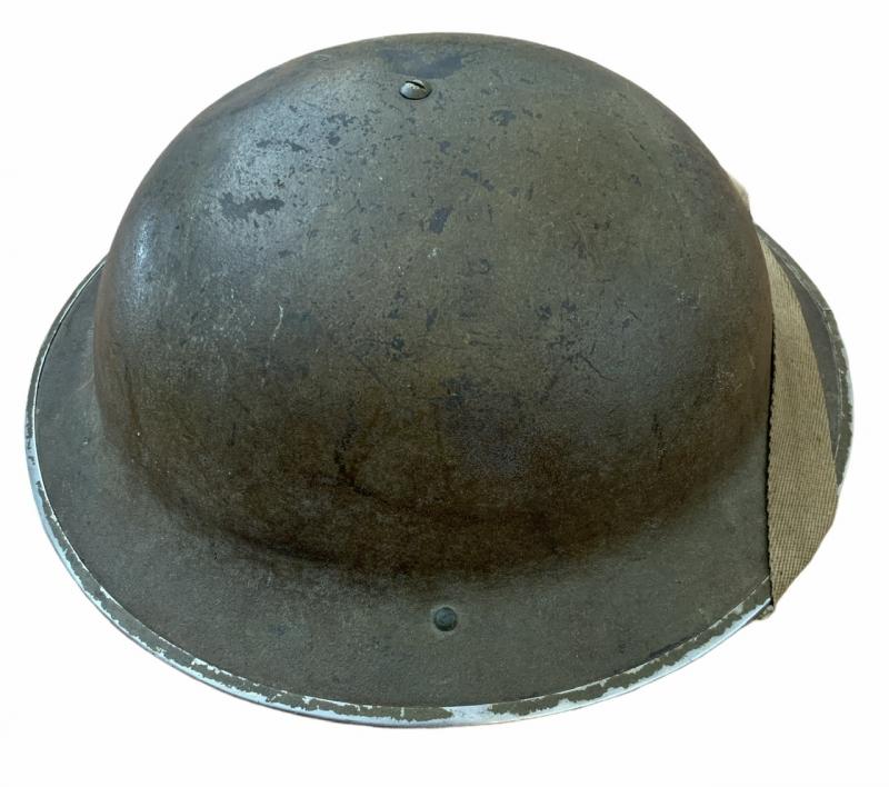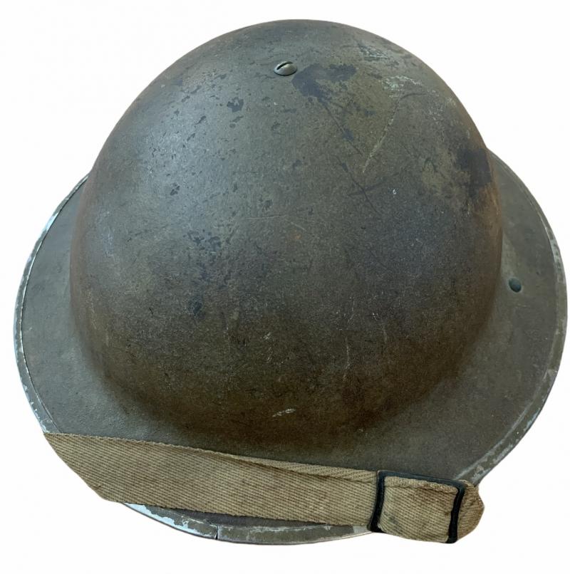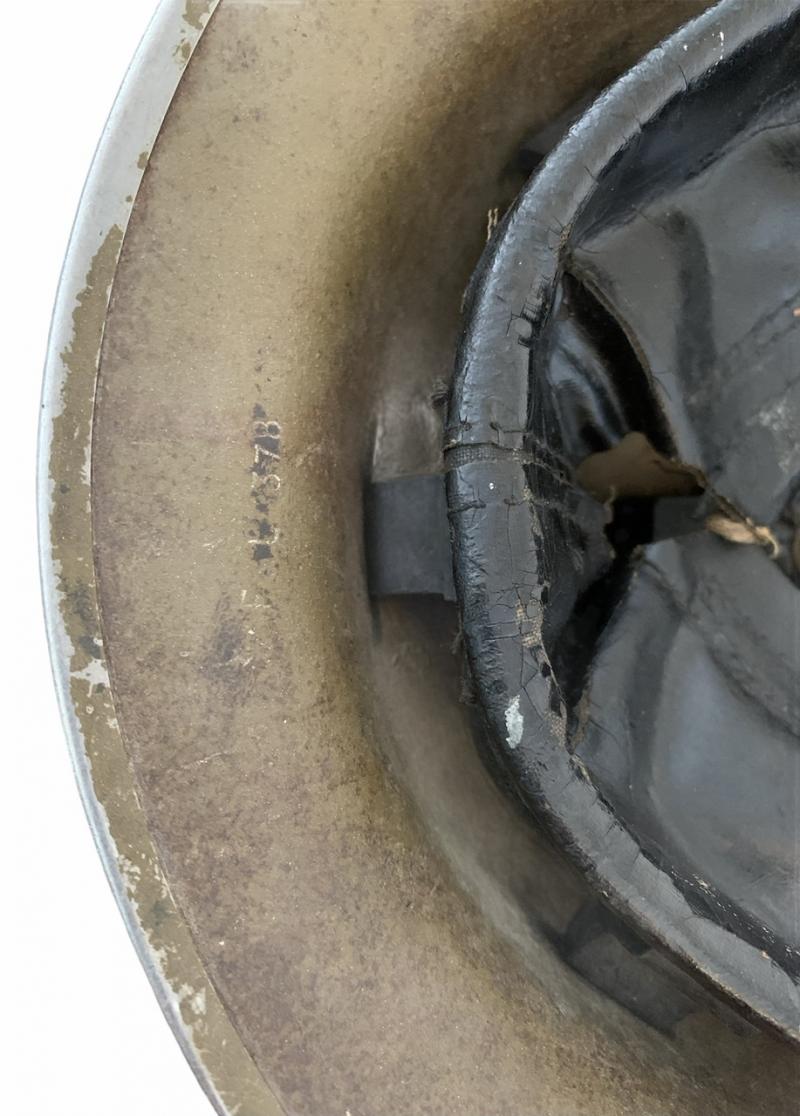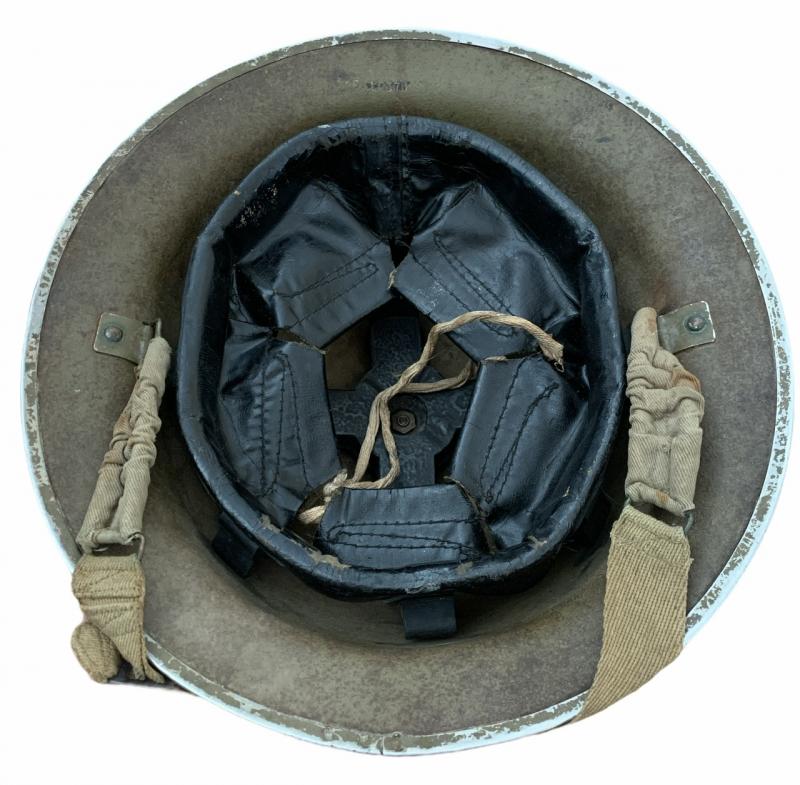 Nicely maker marked “F & L” which was “Fisher & Ludlow Ltd. of Birmingham” which produced between “1939 - 1942” The helmet cones with its original liner and early style combat helmet strap. Overal a very nice untouched helmet with its original camo paint in used but very good condition.