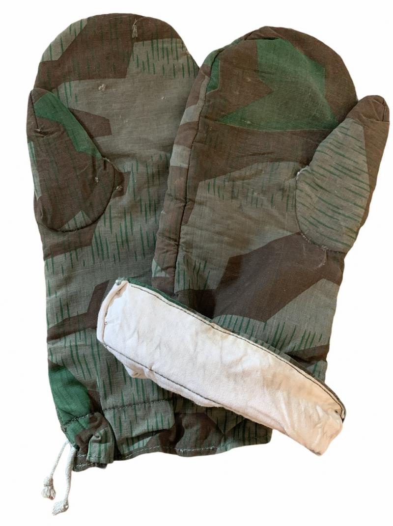 Wehrmacht reversable Splitter camo Gloves Used but very good so-called “Spitter” camo reversable to “white” winter gloves. Great for a winter mannequin or display!