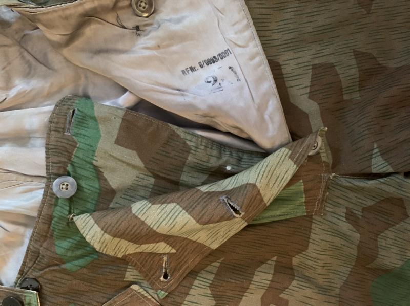 Very nice light used Wehrmacht/Luftwaffe non reversable so-called “Spitter” camo winter trousers with there original camo suspenders. In good size “2”