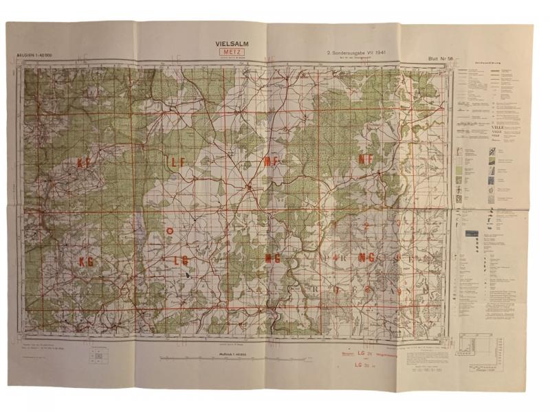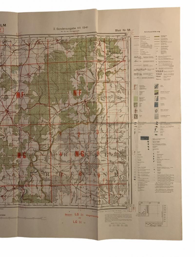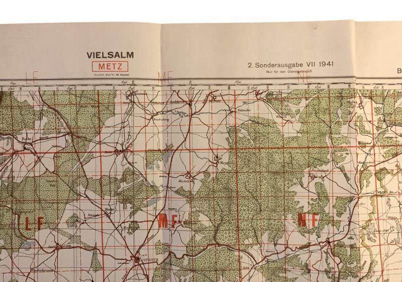 Wehrmacht Staff Road Map Vielsalm Ardennes Very nice early dated “1941” Wehrmacht road map “Vielsalm-Metz” Ardennes in used but very good condition. Great for a Battle of Bulge display!