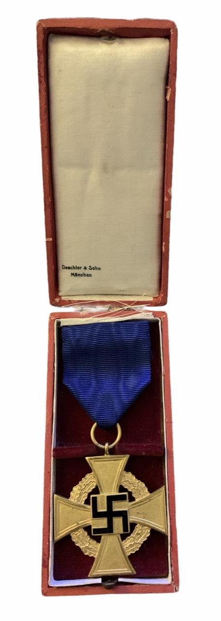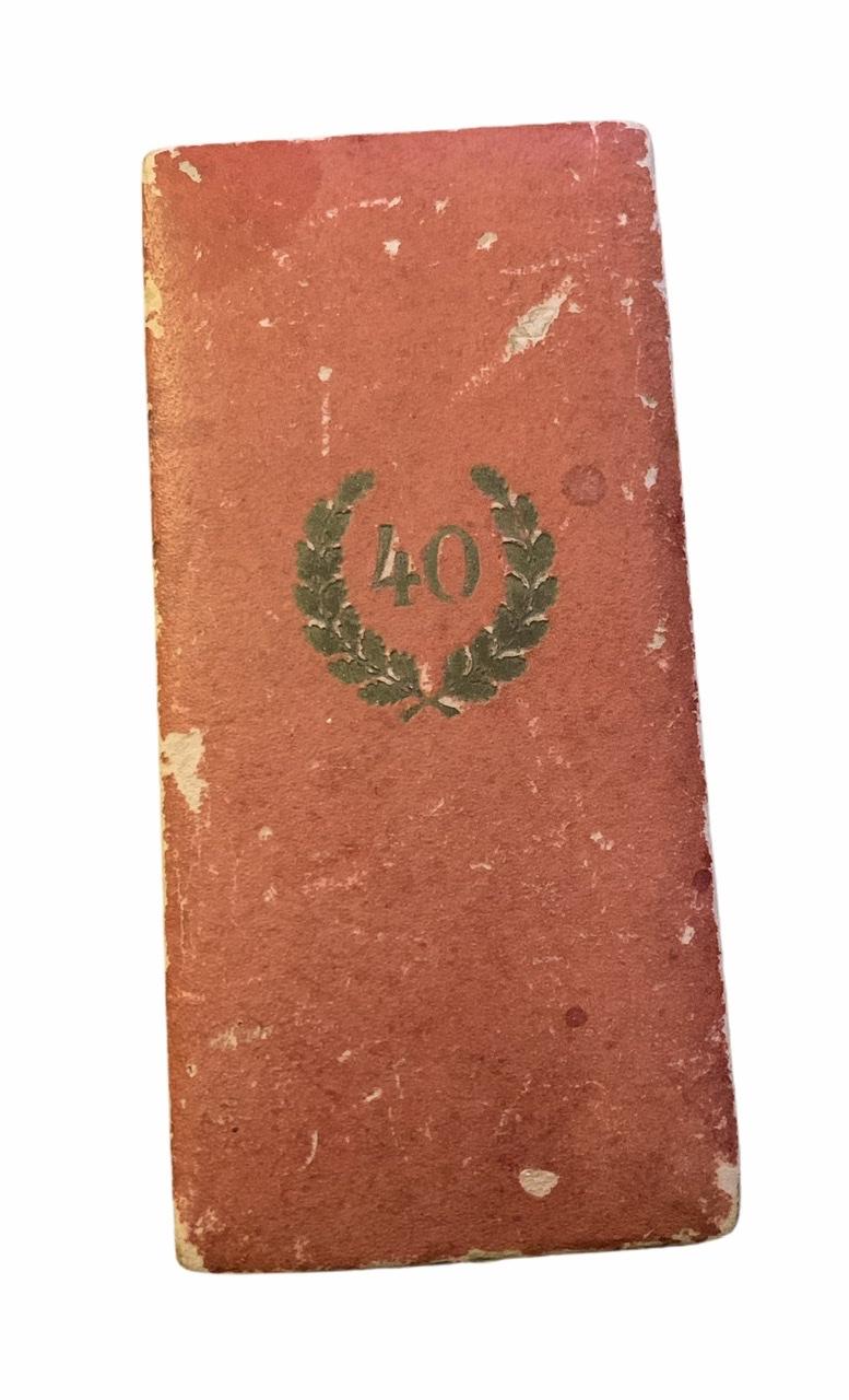 Very nice cased Third Reich 40 Years Loyal Service Medal. With its original ribbon.