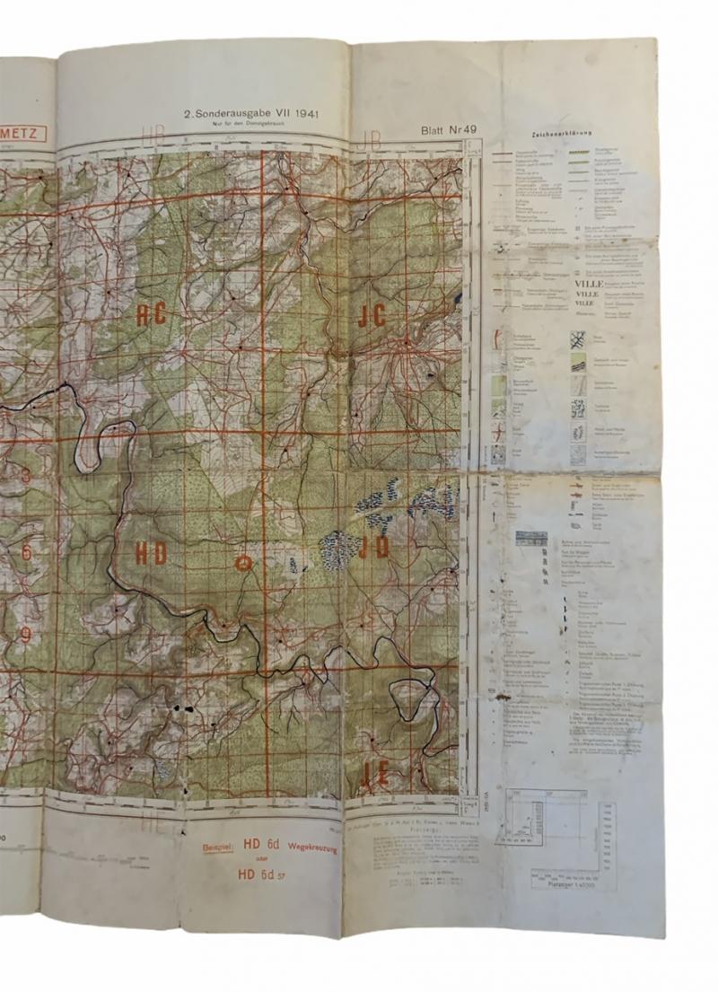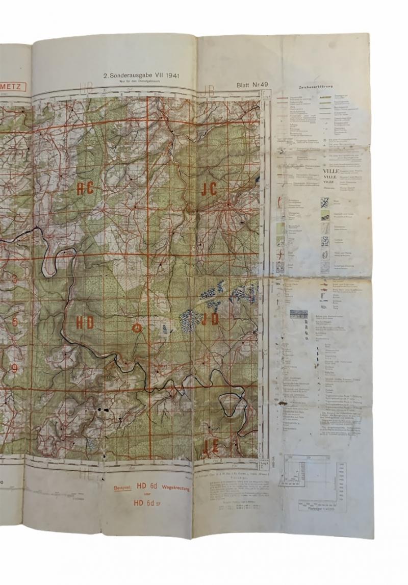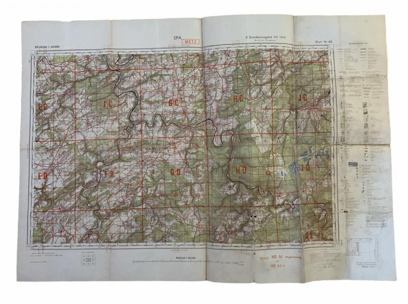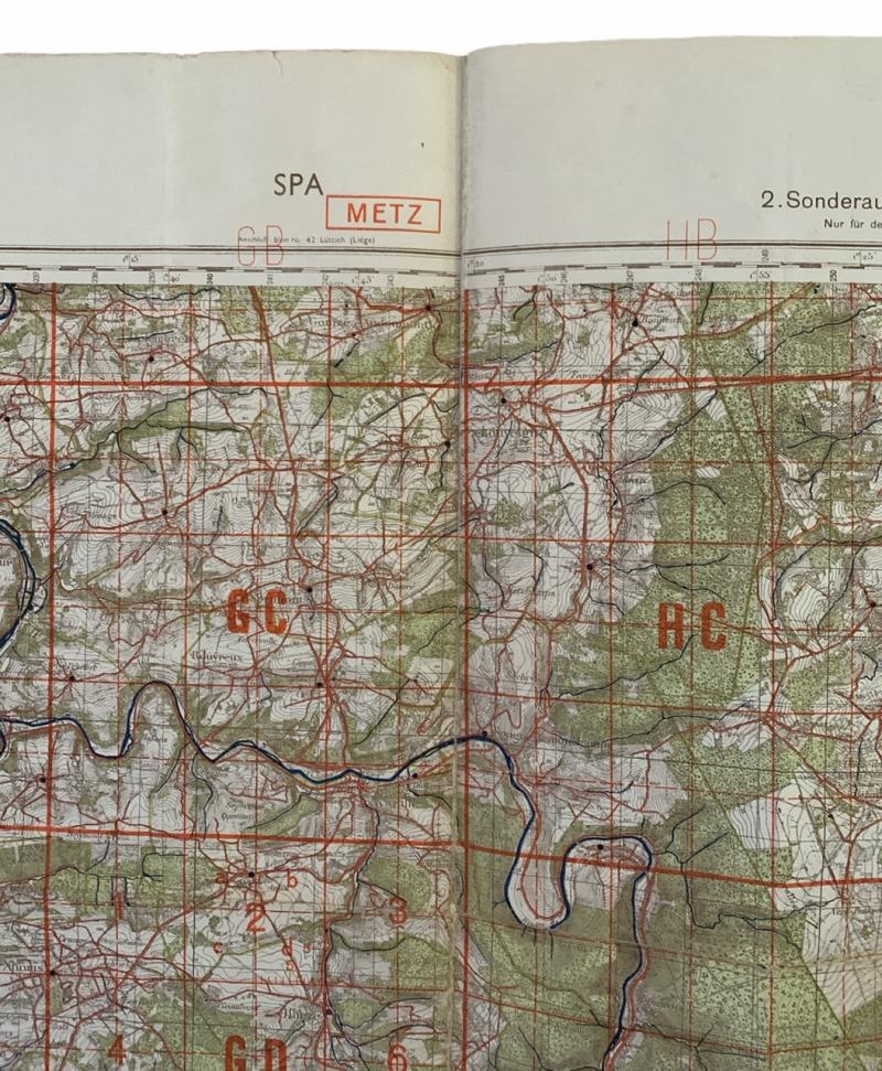 Wehrmacht Staff Road Map Spa Ardennes Very nice early dated “1941” Wehrmacht road map “Spa-Metz” Ardennes in used but very good condition. Great for a Battle of Bulge display!
