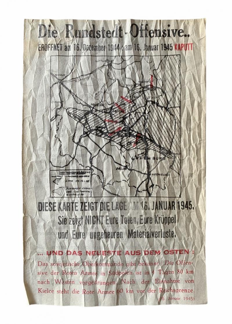 “Die Von Runstedt-Offensive” these allied propaganda flyers would be shoot by Artillery in special ammunition to the German soldiers to de-motivatie them to continue fighting