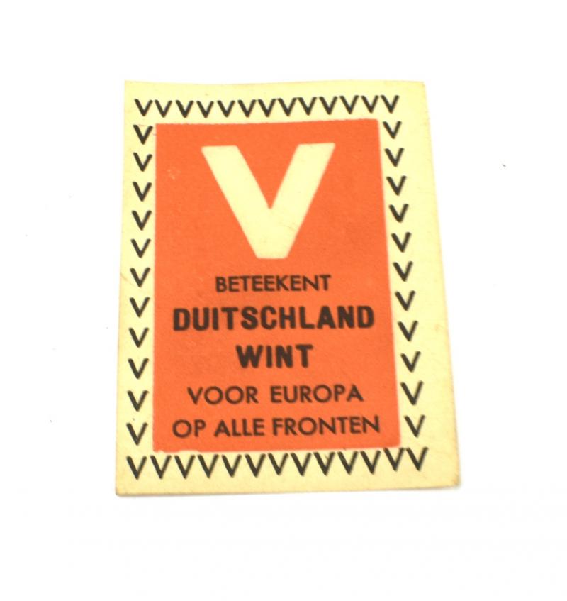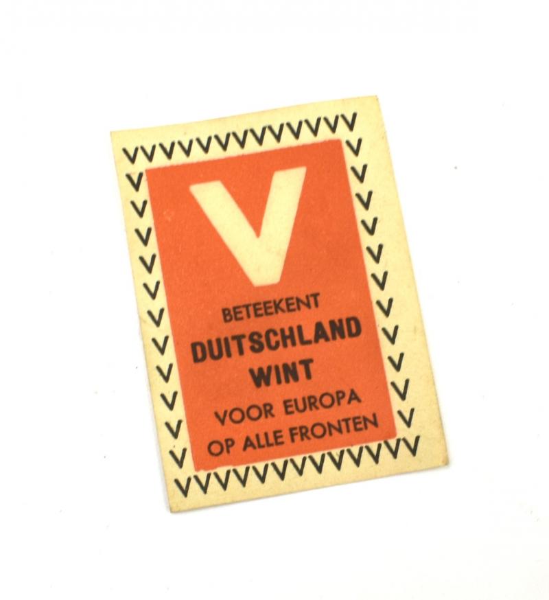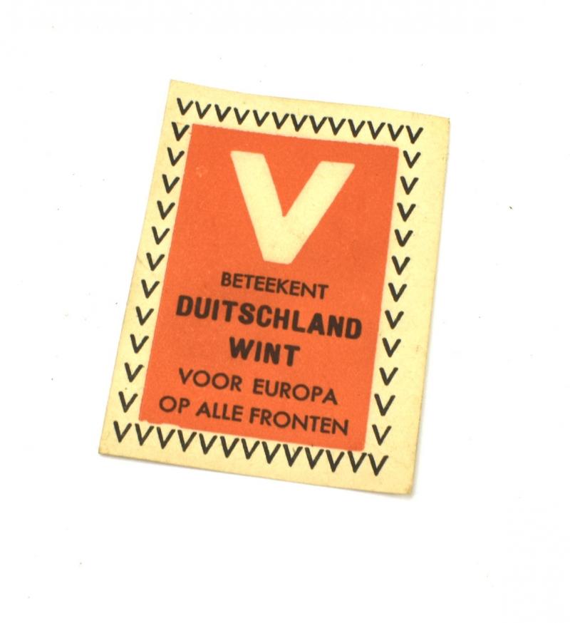 “V beteekent Duitschland wint voor Europa op alle Fronten” (V means Germany wins for Europe on all fronts) this propaganda seal would be used to close parcels and envelopes.