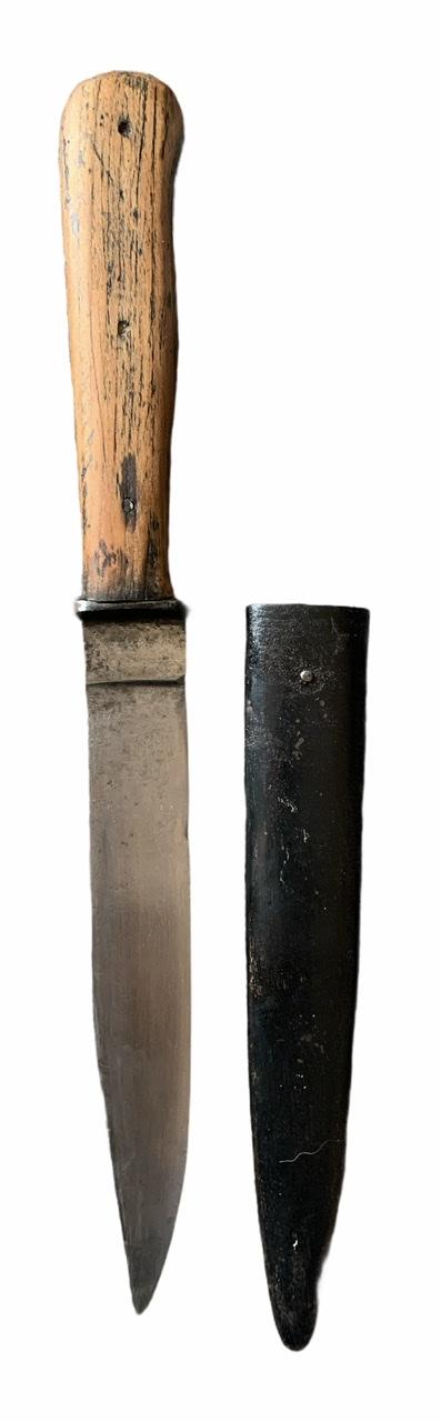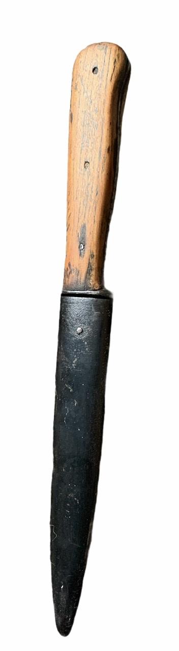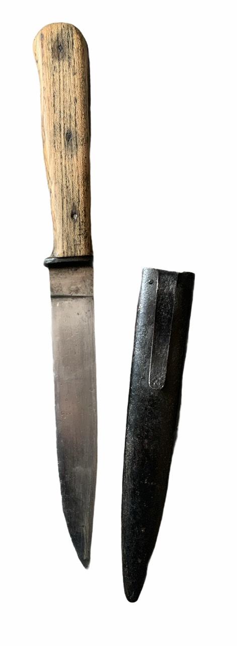 Very nice used Wehrmacht close combat knife with its original metal scabbard with metal belt clib