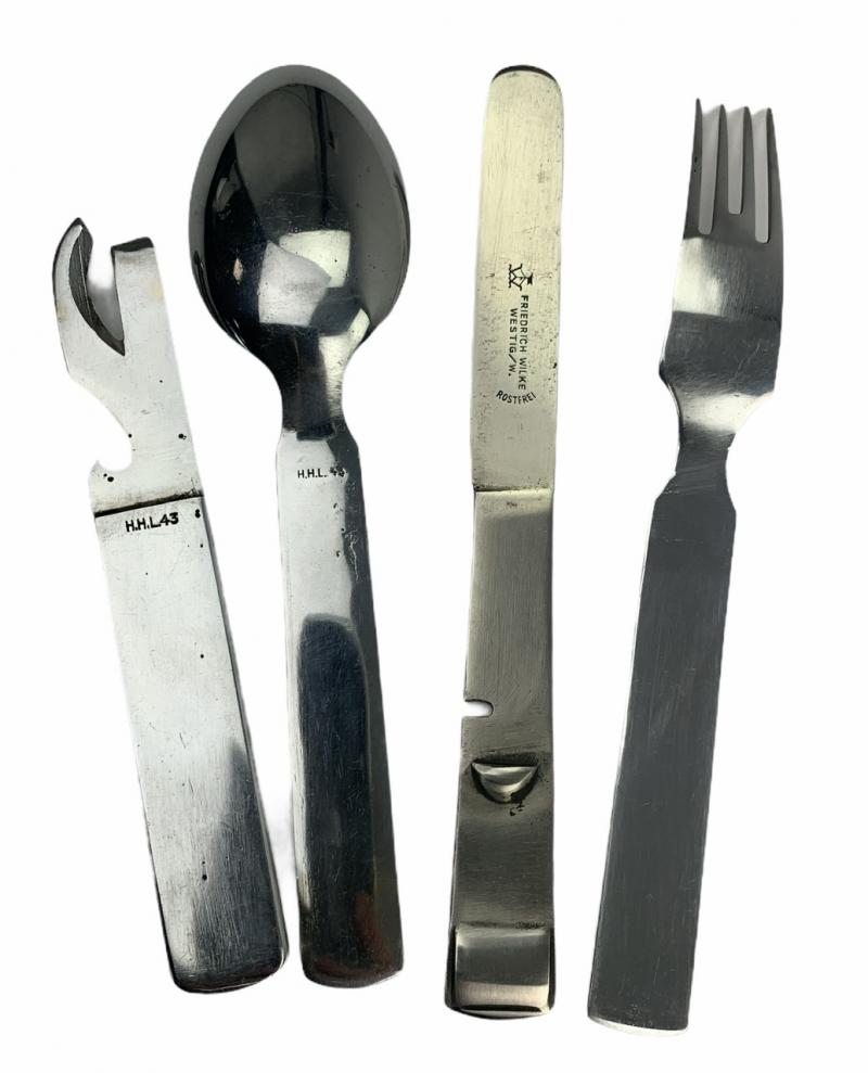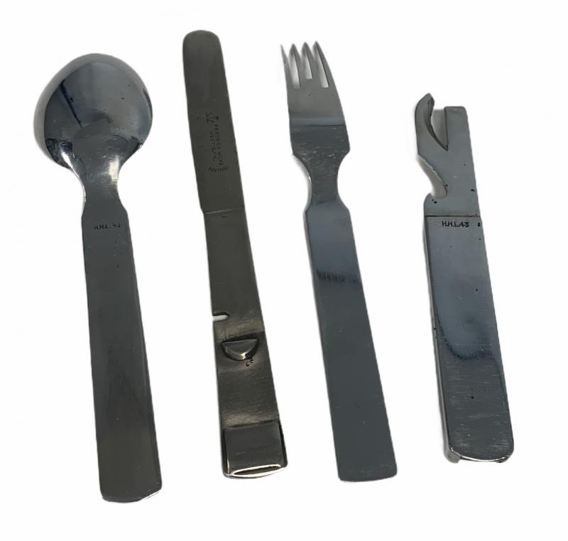 With stainless steel spoon and fork, knife and can opener are steel made.