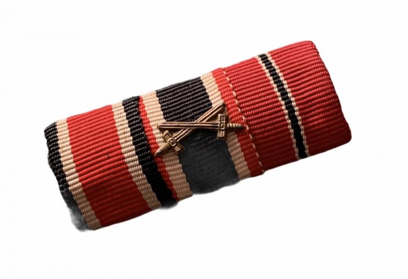 Great on a Luftwaffe tunic, this nice used Luftwaffe ribbon bar. With the Iron Cross “1939” second class ribbon, War Merrits Cross with Swords ribbon and the Eastern Front Medal ribbon. With nice Luftwaffe wool backing. In very good condition.
