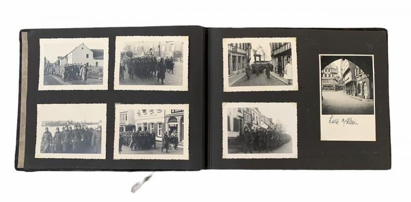 Photo Album Wehrmacht Officer “Kriegs Erinnerungen” very nice original photo album From a Wehrmacht Officer serving in France With nice original attached photos In very good condition.