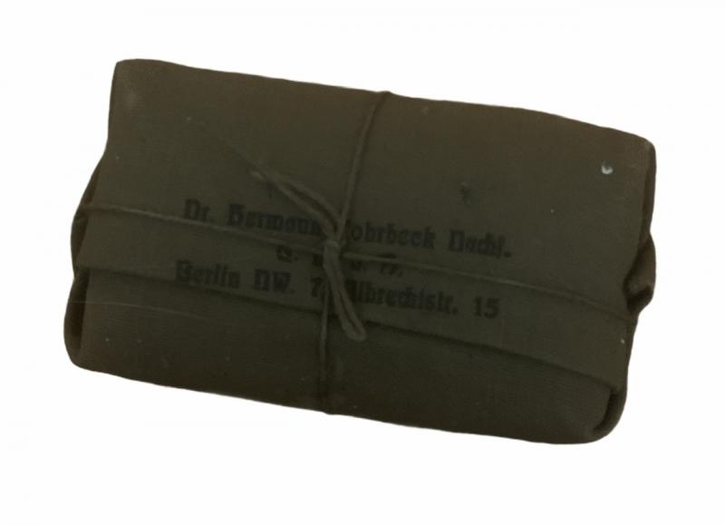 Dated “1937” nice Wehrmacht First Aid wound bandage. “Verbandpäckchen” Which was carried in every Wehrmacht combat tunic in the small bandage pocket inside. In very good condition.