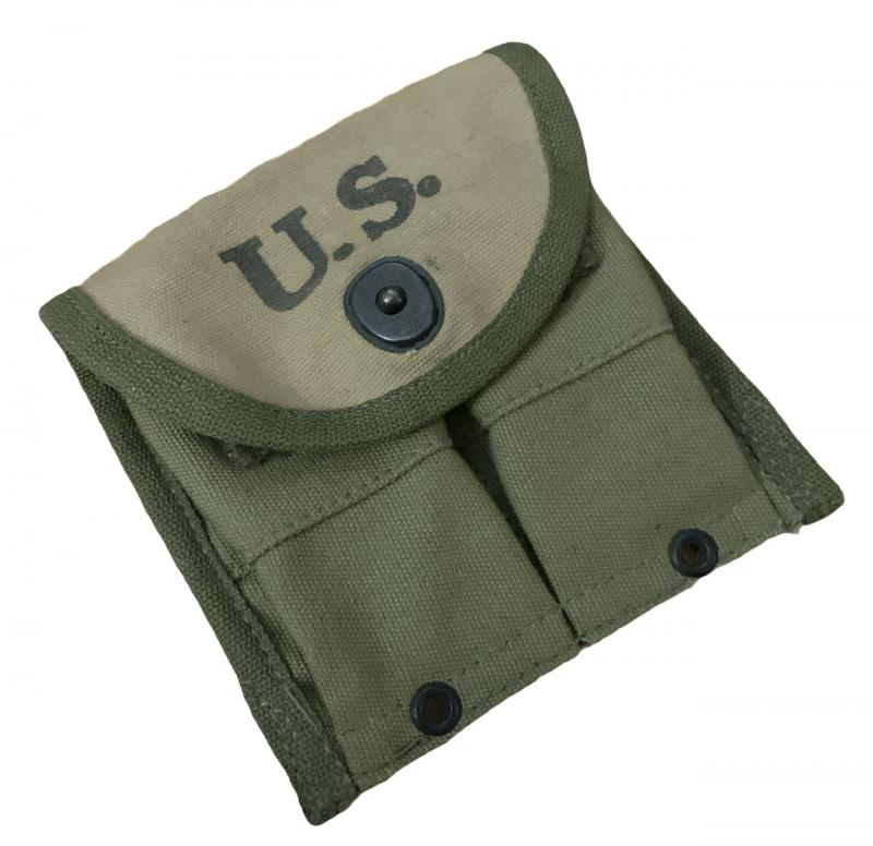 Pouch was made to holt 2 box magazines with each 15 rounds in Caliber .30 M1 Carbine ammunition.