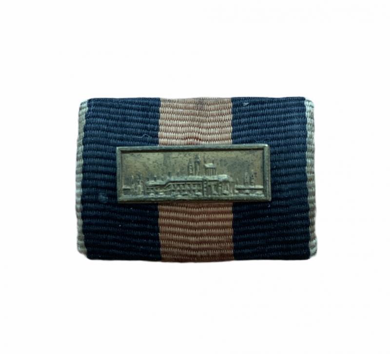 Wehrmacht Ribbon Bar with Clasp Nice singel Wehrmacht ribbon bar from the “1e Oktober 1938” medal with the Prague castle clasp Great on a tunic or as part of a medal/ribbon bar collection.