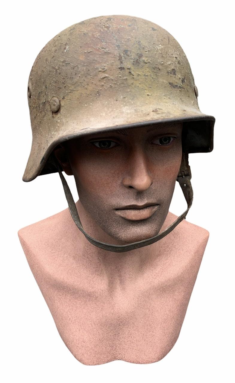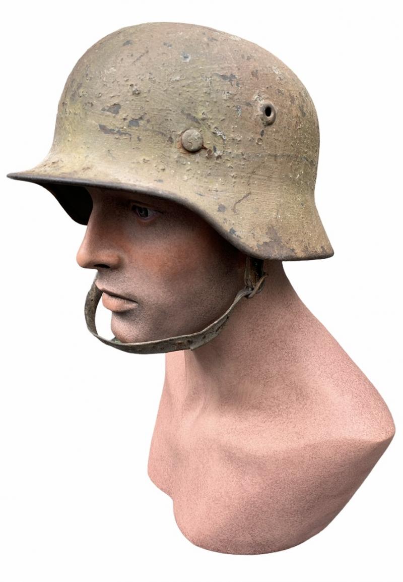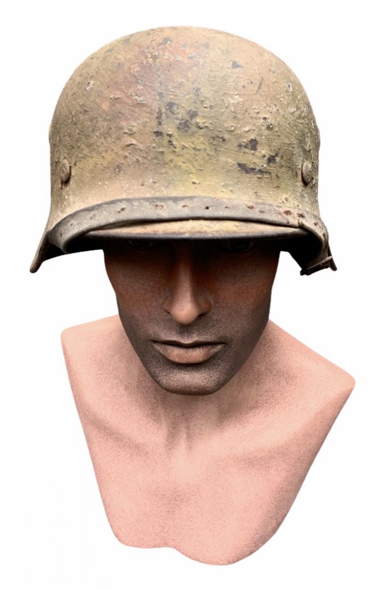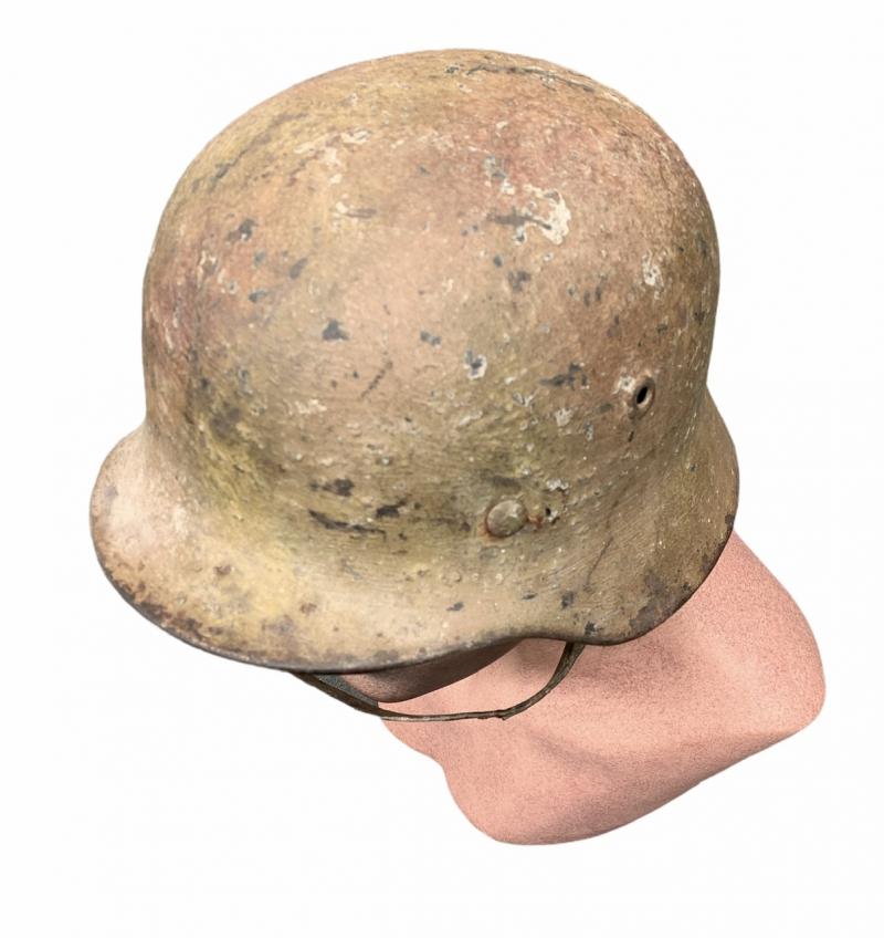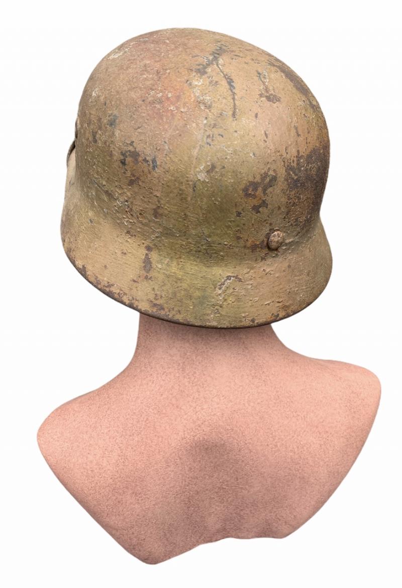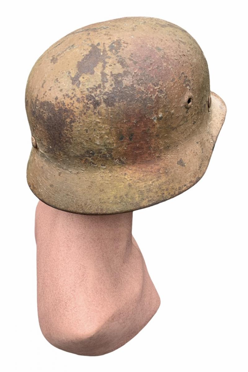 Overal a fantastic untouched Luftwaffe M40 camo helmet in very good condition. Fantastic for a helmet collection of on a Luftwaffe field division mannequin!